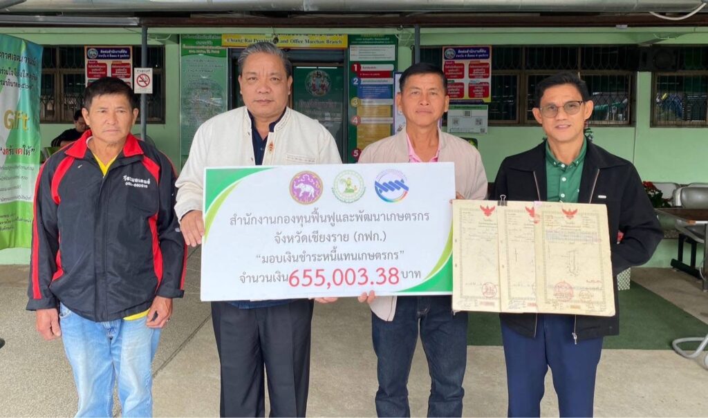 The post กฟก.จังหวัดเชียงราย ชำระหนี้แทนเกษตรกร สถานะหนี้บังคับคดีขายทอดตลาด รักษาที่ดินทำกินให้เกษตรกร appeared first on สำนักงานกองทุนฟื้นฟูและพัฒนาเกษตรกร สาขาจังหวัดเชียงราย.