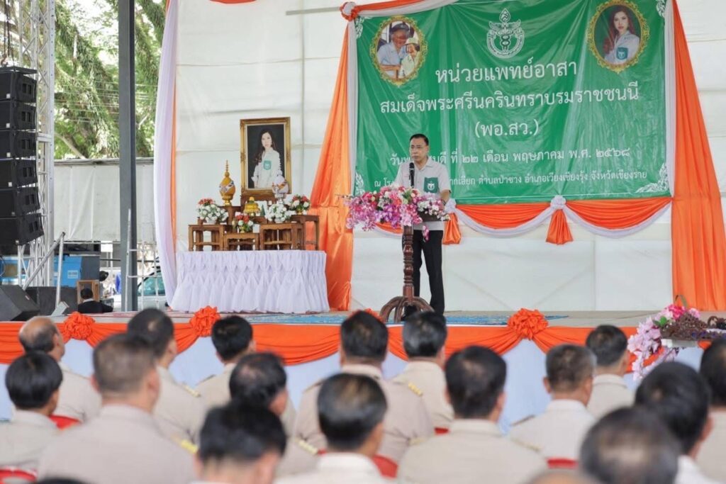วันที่ 22 พฤษภาคม 2568 เวลา 08.30 น. นายนิยม สุวรรณประภา หัวหน้าสำนักงานกองทุนฟื้นฟูและพัฒนาเกษตรกร สาขาจังหวัดเชียงราย (กฟก.) มอบหมายให้ นางสาวผุสดี มะเทวิน นางสาวนิตยา ตุ้ยลี้ ผู้ปฏิบัติงานสำนักงานสาขาจังหวัดเชียงราย และนายณัฐภูมิ เข็มขาว ผู้ปฏิบัติงานกลุ่มงานบริการ เข้าร่วมกิจกรรมโครงการจังหวัดเคลื่อนที่ “หน่วยบำบัดทุกข์ บำรุงสุข สร้างรอยยิ้ม ให้กับประชาชน” โดยกำหนดดำเนินโครงการร่วมกับแผนปฏิบัติงานหน่วยแพทย์เคลื่อนที่ พอ.สว.ประจำจังหวัดเชียงราย ประจำปีงบประมาณ พ.ศ. 2568 โดยมี นายชรินทร์ ทองสุข ผู้ว่าราชการจังหวัดเชียงราย เป็นประธาน ณ บ้านหมากเอียด หมู่ที่ 14 ต.ป่าซาง อ.เวียงเชียงรุ้ง จ.เชียงราย