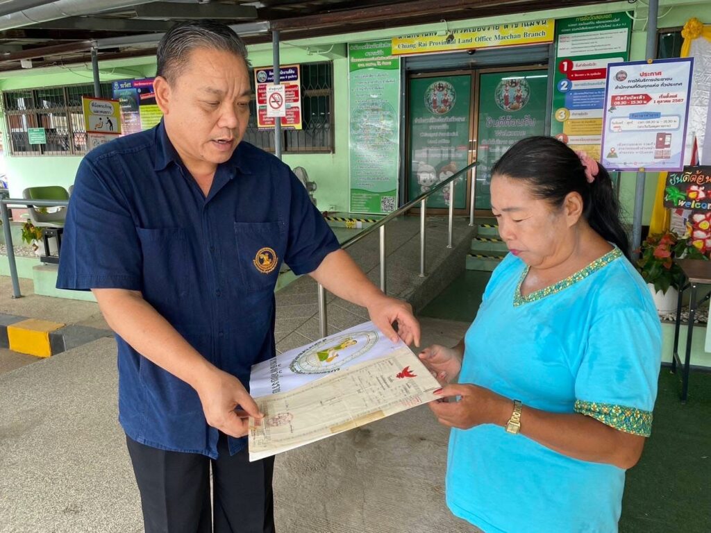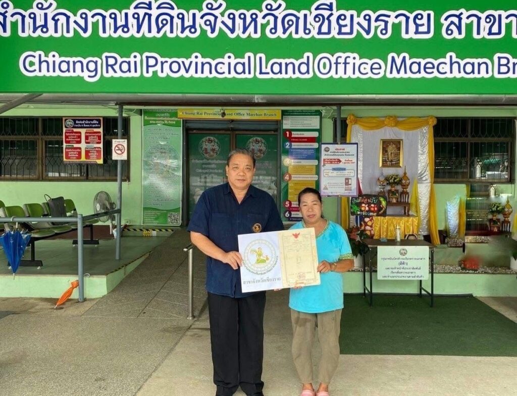 โดยการโอนโฉนดที่ดินและมอบโฉนดที่ดินคืนให้เกษตรกรรายดังกล่าว สืบเนื่องจากสำนักงานกองทุนฟื้นฟูและพัฒนาเกษตรกร (กฟก.) ได้เข้าไปชำระหนี้แทนเกษตรกร ให้กับสหกรณ์ฯเจ้าหนี้ของเกษตรกร โดยเกษตรกรได้นำที่ดิน ไปจำนองค้ำประกันการกู้เงินกับสหกรณ์ฯ เพื่อนำเงินไปลงทุนทำเกษตร และเกษตรกรไม่สามารถชำระหนี้เงินกู้ให้กับสหกรณ์ฯได้ตามสัญญา และเกษตรกรได้ยื่นมาเรื่องขอความช่วยเหลือในการแก้ไขปัญหาหนี้สิน กับสำนักงานกองทุนฟื้นฟูและพัฒนาเกษตรกร สาขาจังหวัดเชียงราย (กฟก.) โดยได้รับการช่วยเหลือในการชำระหนี้แทนดังกล่าว ทั้งนี้ที่ดินจะตกเป็นของ กองทุนฟื้นฟูและพัฒนาเกษตรกร ตามกฎหมาย โดยเกษตรกรทำสัญญาเช่าชื้อที่ดินคืน กับสำนักงานกองทุนฟื้นฟูและพัฒนาเกษตรกร (กฟก.) ระยะเวลา 10 ปี และเกษตรกรได้ชำระเงินครบตามสัญญาเรียบร้อยแล้ว
