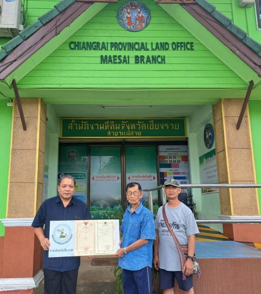 วันที่ 28 พฤษภาคม 2568 เวลา 10.00 น. นายนิยม สุวรรณประภา หัวหน้าสำนักงานกองทุนฟื้นฟูและพัฒนาเกษตรกร สาขาจังหวัดเชียงราย (กฟก.) ได้ดำเนินการโอนโฉนดที่ดินและมอบโฉนดที่ดินให้เกษตรกร ตำบลบ้านด้าย อำเภอแม่สาย จำนวน 1 ราย เป็นโฉนดที่ดิน จำนวน 2 แปลง เนื้อที่ 2 งาน 28 ตารางวา ณ สำนักงานที่ดินจังหวัดเชียงราย สาขาแม่สาย