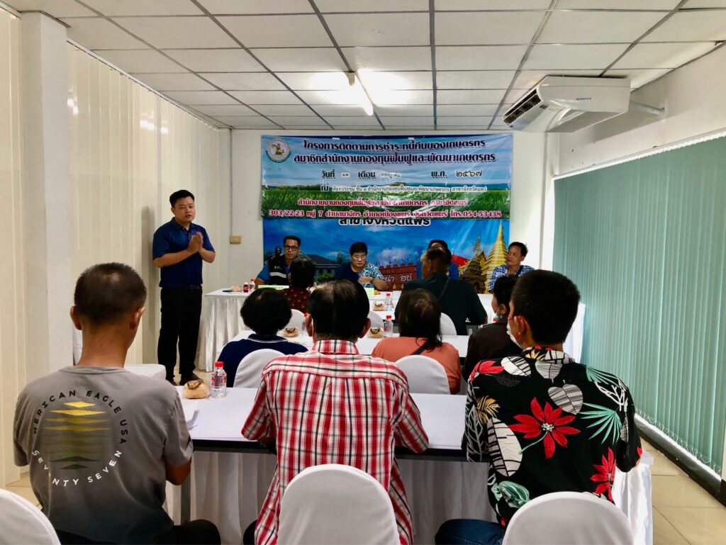 The post กฟก.จังหวัดแพร่ จัดอบรมโครงการติดตามการชำระหนี้คืนของเกษตรกรสมาชิกสำนักงานกองทุนฟื้นฟูและพัฒนาเกษตรกร สาขาจังหวัดแพร่ งบประมาณรายจ่ายประจำปีงบประมาณ พ.ศ.2567 appeared first on สำนักงานกองทุนฟื้นฟูและพัฒนาเกษตรกร สาขาจังหวัดแพร่.