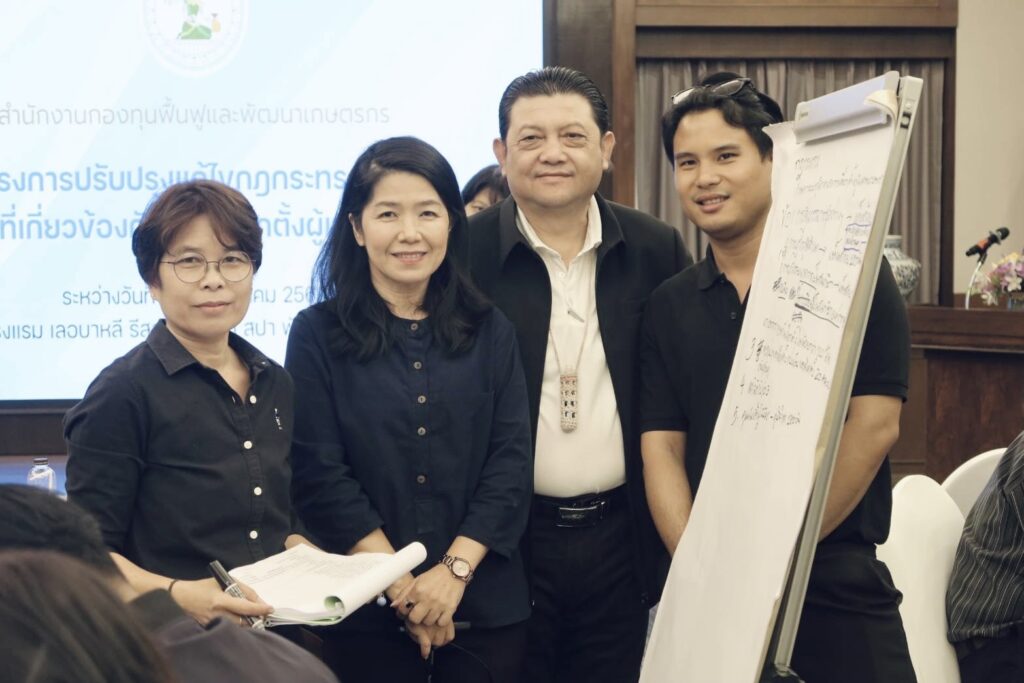 วันที่ 25 มีนาคม 2569 สำนักงานกองทุนฟื้นฟูและพัฒนาเกษตรกร จัดโครงการปรับปรุงแก้ไขกฎกระทรวงและประกาศที่เกี่ยวข้องกับการเลือกตั้งผู้แทนเกษตรกร โดยนางวรรณี มหานีรานนท์ เลขาธิการสำนักงานกองทุนฟื้นฟูฯ เป็นประธานกล่าวเปิดโครงการ นางนุชฎา จำเริญสาร ผู้อำนวยการสำนักกฎหมาย ผู้รับผิดชอบ โครงการ ผู้เข้าร่วมประกอบด้วย คณะกรรมการบริหาร รองเลขาธิการ ผู้อำนวยการสำนัก ผู้อำนวยการสำนักกิจการสาขาภูมิภาคที่ 1-4 หัวหน้าส่วน ตัวแทนกลุ่มจังหวัดในเขตบูรณาการ พนักงานผู้ปฏิบัติงานที่เกี่ยวข้อง นางวรรณี เลขาธิการฯ กล่าวว่าวัตถุประสงค์ของการจัดเวทีในครั้งนี้เพื่อสรุปประเด็นปัญหาข้อเสนอแนะจากการเลือกตั้งครั้งที่ผ่านมา ให้นำไปสู่การแก้ไขกฎกระทรวง ระเบียบ หลักเกณฑ์ และประกาศที่เกี่ยวข้องกับการเลือกตั้งผู้แทนเกษตรกร ให้สอดคล้องกับกฎกระทรวงและการเลือกตั้งผู้แทนเกษตรกร ให้เกิดประสิทธิภาพยิ่งขึ้น และบรรลุผลสำเร็จ ตามวัตถุประสงค์และเป้าหมาย รวมทั้งเพื่อให้เกิดประสิทธิภาพสูงสุดในการจัดการเลือกตั้งผู้แทนเกษตรกร ในคณะกรรมการกองทุนฟื้นฟูและพัฒนาเกษตรกรครั้งต่อไป