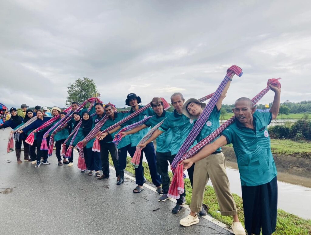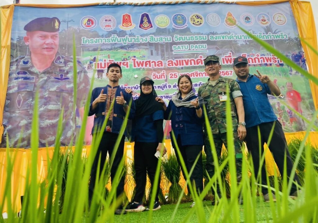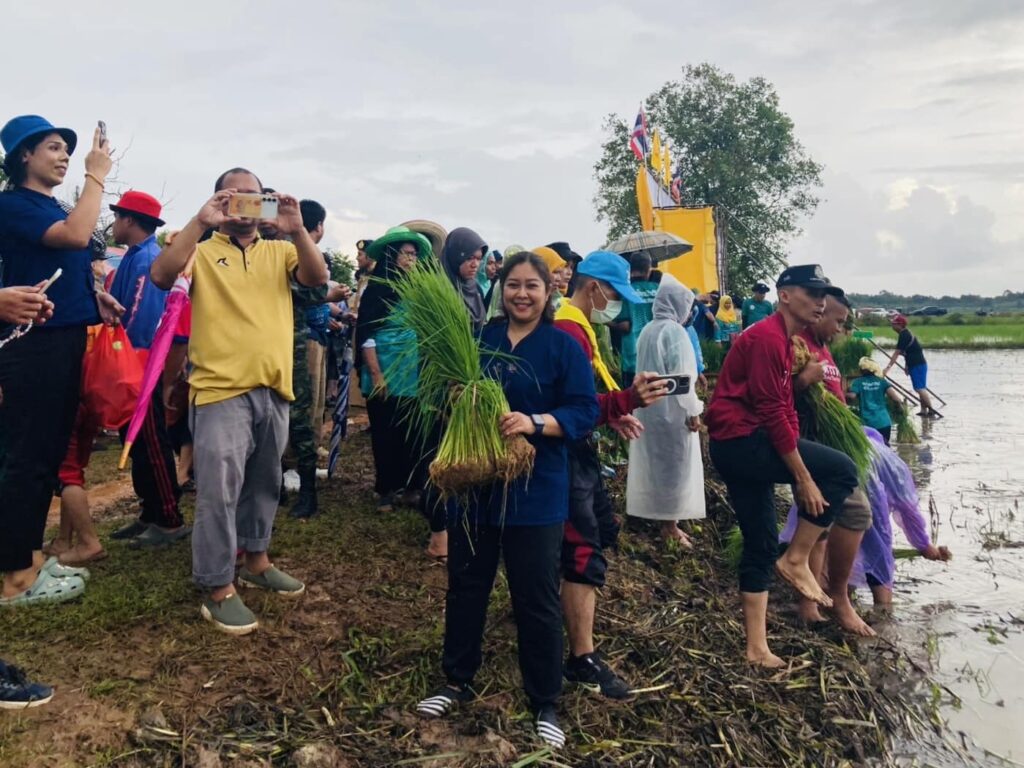 วันจันทร์ ที่ 25 พฤศจิกายน 2567 เวลา 15.00 น. นางเสาวลักษณ์ แก้วประจุ หัวหน้าสำนักงานกองทุนฟื้นฟูและพัฒนาเกษตรกร สาขาจังหวัดนราธิวาส พร้อมด้วยเจ้าหน้าที่ ร่วมกิจกรรมลงแขกดำนา ตามโครงการฟื้นฟูนาร้าง สิบสาน วัฒนธรรม ลงแขกดำนาเพื่อเด็กกำพร้า SATU PADU ณ แปลงนาบ้านชุมบก หมู่ที่ 9 ตำบลเกาะสะท้อน อำเภอตากใบ จังหวัดนราธิวาส โดยมี ว่าที่ร้อยตรี ตระกูล โทธรรม ผู้ว่าราชการจังหวัดนราธิวาส เป็นประธานในพิธีเปิดกิจกรรม นายสมบูรณ์ จิตรเพ็ญ ประธานองค์กรภาคประชาชนเพื่อสันติและเศรษฐกิจพอเพียงจังหวัดนราธิวาส กล่าวรายงาน พร้อมด้วย หัวหน้าส่วนราชการ เจ้าหน้าที่ สมาชิกองค์กรภาคประชาชนฯ และประชาชนในพื้นที่เป็นจำนวนมาก ร่วมกันพลิกฟื้นนาข้าวที่ถูกทิ้งร้าง บนพื้นที่ 10 ไร่ ให้กลับมาปลูกข้าวได้อีกครั้ง เห็นถึงความสำคัญของการทำนา การสร้างความมั่นคงทางด้านอาหาร และในอีก 2-3 เดือนข้างหน้า ผลผลิตข้าวที่ร่วมกันลงแขกดำนาทั้งหมด จะได้มอบให้กับเด็กกำพร้าในพื้นที่ ซึ่งเป็นข้าวหอมกระดังงา ข้าวพื้นเมืองของชาวตากใบ และเป็นสินค้า GI ที่จะส่งเสริมให้คนรุ่นหลังได้อนุรักษ์ให้คงอยู่สืบไป