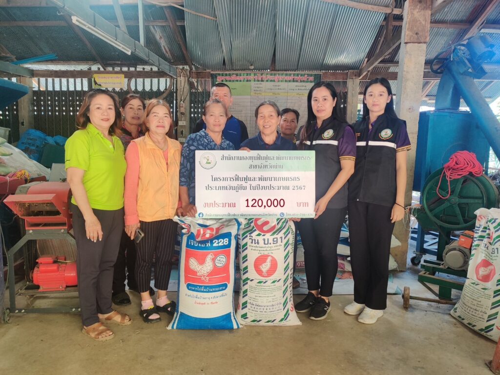 วันที่ 18 ธันวาคม 2567 เวลา 10.00 น. นางณัติกานต์ บุญเจริญ หัวหน้าสำนักงานกองทุนฟื้นฟูและพัฒนาเกษตรกร สาขาจังหวัดน่าน มอบหมายให้นางสาวนุชจรี จันทร์น้ำสระ พนักงานทั่วไป นางชุติมา ภัทรภิญโญ ลูกจ้างกลุ่มงานทั่วไป และนายภัทร์ศรุต คล้ายสุบรรณ ลูกจ้างกลุ่มงานบริการ ลงพื้นที่ร่วมส่งมอบปัจจัยการผลิต (งวดที่3) จำนวนเงิน 120,000 บาท ให้กับองค์กรเกษตรกร กลุ่มเกษตรผสมผสานบ้านเวียงสอง ตามที่องค์กรเกษตรกรได้รับอนุมัติโครงการฟื้นฟูและพัฒนาเกษตรกร งบประมาณประจำปี 2567 ประเภทงบกู้ยืม ชื่อโครงการ “ต่อยอดการเลี้ยงไก่พื้นเมืองพันธุ์ประดู่หางดำเพื่อจำหน่าย” โดยองค์กรเกษตรกรได้รับงบประมาณทั้งสิ้น จำนวนเงิน 595,000 บาท สมาชิกเข้าร่วมโครงการ 10 คน ระยะเวลาการคืนเงิน 5 ปี (ปลอดดอกเบี้ย) ณ บ้านเวียงสอง หมู่ 4 ตำบลและ อำเภอทุ่งช้าง จังหวัดน่าน