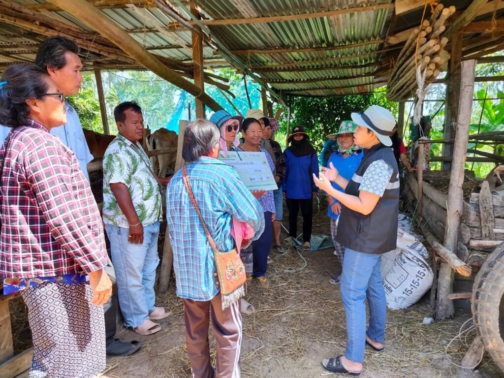 นางสาวอัมพวา เพ็ชรกิ่ง หัวหน้าสำนักงานกองทุนฟื้นฟูและพัฒนาเกษตรกรสาขาจังหวัดร้อยเอ็ด พร้อมเจ้าหน้าที่ ลงพื้นที่ปฎิบัติงานเพื่อติดตามและประเมินผลโครงการฟื้นฟูและพัฒนาเกษตรกรขององค์กรเกษตรกร ที่ได้รับเงินสนับสนุนประจำปีงบประมาณ2567 ประเภทเงินกู้ยืม(ปลอดดอกเบี้ย) กิจกรรมโครงการเลี้ยงโคเพื่อขยายพันธุ์