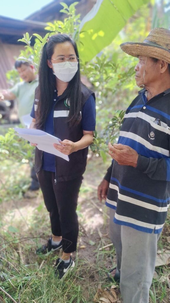 นางสาวอัมพวา เพ็ชรกิ่ง หัวหน้าสำนักงานกองทุนฟื้นฟูและพัฒนาเกษตรกรสาขาจังหวัดร้อยเอ็ด พร้อมเจ้าหน้าที่ ลงพื้นร่วมชี้ระวังแนวเขตและลงชื่อรับรองเขตที่ดิน ณ ตำบลเมืองบัว