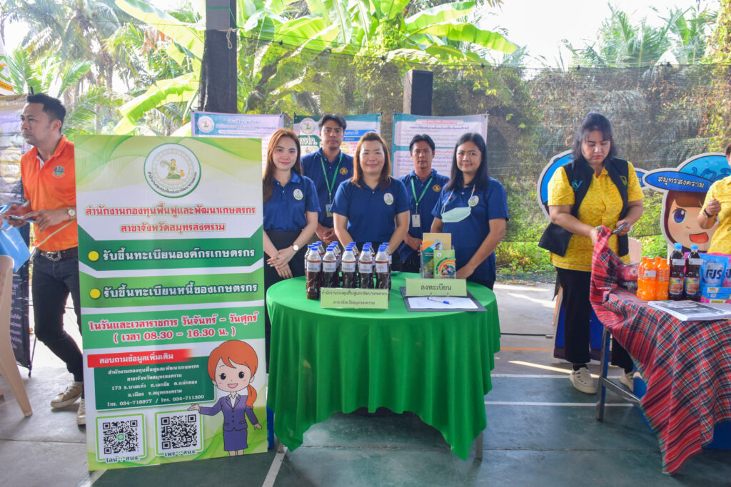 เมื่อวันที่ 20 กุมภาพันธ์ 2568 เวลา 08.00 น. นางสาววาสนา สง่างาม หัวหน้าสำนักงานกองทุนฟื้นฟูและพัฒนาเกษตรกรสาขาจังหวัดสมุทรสงคราม พร้อมเจ้าหน้าที่ ร่วมออกหน่วยบริการประชาชน ในโครงการคลินิกเกษตรเคลื่อนที่ในพระราชานุเคราะห์สมเด็จพระบรมโอรสาธิราชฯ สยามมกุฎราชกุมารเฉลิมพระเกียรติ ประจำปีงบประมาณ พ.ศ. 2568 ครั้งที่ 2 ทั้งนี้ สำนักงานกองทุนฟื้นฟูและพัฒนาเกษตรกรสาขาจังหวัดสมุทรสงคราม เปิดให้มีการลงทะเบียนเพื่อรับผลิตภัณฑ์น้ำหมักชีวภาพจากปลา พร้อมทั้งเอกสารประชาสัมพันธ์เกี่ยวกับการยื่นคำขอขึ้นทะเบียนองค์กรเกษตรกร และการขึ้นทะเบียนหนี้เกษตรกรให้กับเกษตรกรและผู้สนใจทั่วไป โดยมี นางนิศากร วิศิษฏ์สรอรรถ ผู้ว่าราชการจังหวัดสมุทรสงคราม เป็นประธานในพิธีเปิดโครงการคลินิกเกษตรเคลื่อนที่ฯ และได้เยี่ยมชมคลินิกสำนักงานกองทุนฟื้นฟูและพัฒนาเกษตรกรสาขาจังหวัดสมุทรสงครามในครั้งนี้ด้วย ณ วัดบางพลับ ตำบลบางพรม อำเภอบางคนที จังหวัดสมุทรสงคราม