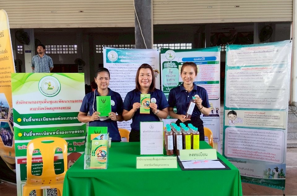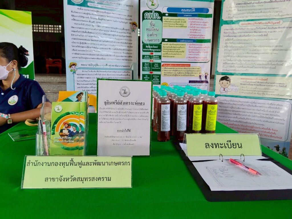 เมื่อวันที่ 22 พฤษภาคม 2568 เวลา 08.00 น. นางสาววาสนา สง่างาม หัวหน้าสำนักงานกองทุนฟื้นฟูและพัฒนาเกษตรกรสาขาจังหวัดสมุทรสงคราม พร้อมเจ้าหน้าที่ ร่วมออกหน่วยบริการประชาชน ในโครงการคลินิกเกษตรเคลื่อนที่ในพระราชานุเคราะห์สมเด็จพระบรมโอรสาธิราชฯ สยามมกุฎราชกุมารเฉลิมพระเกียรติ ประจำปีงบประมาณ พ.ศ. 2568 ครั้งที่ 3 ทั้งนี้ สำนักงานกองทุนฟื้นฟูและพัฒนาเกษตรกรสาขาจังหวัดสมุทรสงคราม เปิดให้มีการลงทะเบียนเพื่อรับผลิตภัณฑ์น้ำจุลินทรีย์สังเคราะห์แสง พร้อมทั้งเอกสารประชาสัมพันธ์เกี่ยวกับการยื่นคำขอขึ้นทะเบียนองค์กรเกษตรกร และการขึ้นทะเบียนหนี้เกษตรกรให้กับเกษตรกรและผู้สนใจทั่วไป โดยมี นางนิศากร วิศิษฏ์สรอรรถ ผู้ว่าราชการจังหวัดสมุทรสงคราม เป็นประธานในพิธีเปิดโครงการคลินิกเกษตรเคลื่อนที่ฯ และได้เยี่ยมชมคลินิกสำนักงานกองทุนฟื้นฟูและพัฒนาเกษตรกรสาขาจังหวัดสมุทรสงครามในครั้งนี้ด้วย ณ วัดเขายี่สาร ตำบลยี่สาร อำเภออัมพวา จังหวัดสมุทรสงคราม