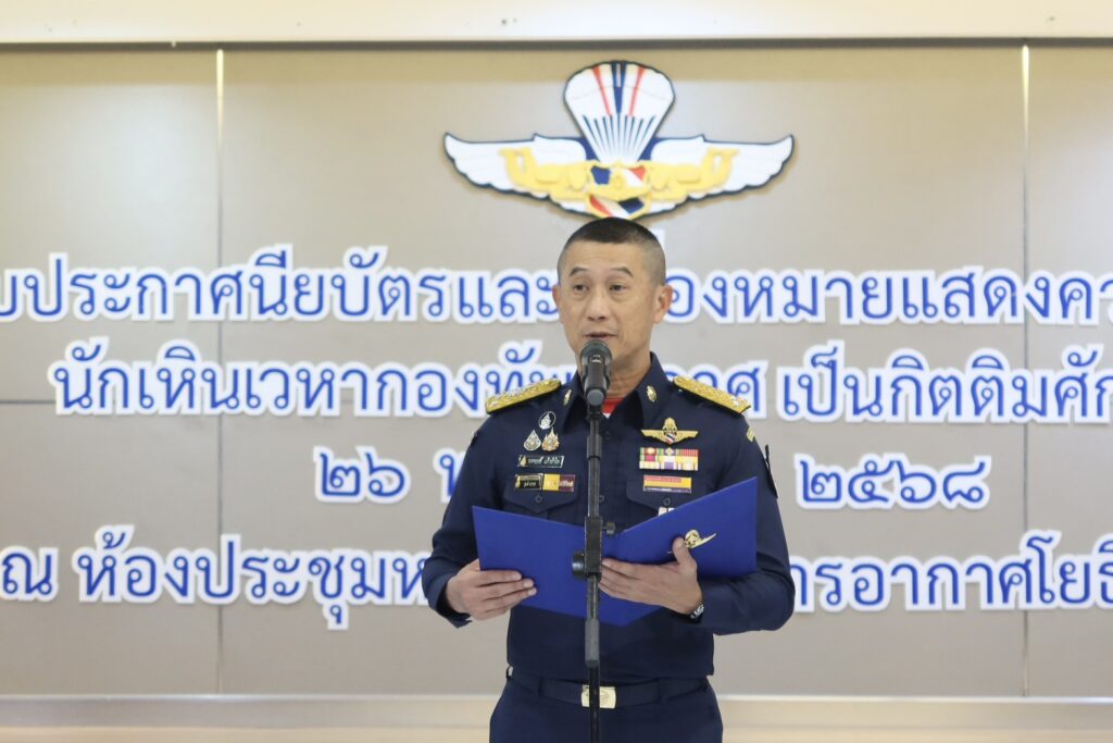 วันที่ 26 พฤศจิกายน 2568 กองทัพอากาศจัดพิธีมอบเครื่องหมายแสดงความสามารถนักเหินเวหากองทัพอากาศเป็นกิตติมศักดิ์ ให้แก่คณะบุคคลผู้ทำคุณประโยชน์ต่อกองทัพอากาศ โดยมี พลอากาศโท ขจรฤทธิ์ แก้วอำไพ ผู้บัญชาการหน่วยบัญชาการอากาศโยธิน เป็นประธานในพิธีมอบเครื่องหมาย