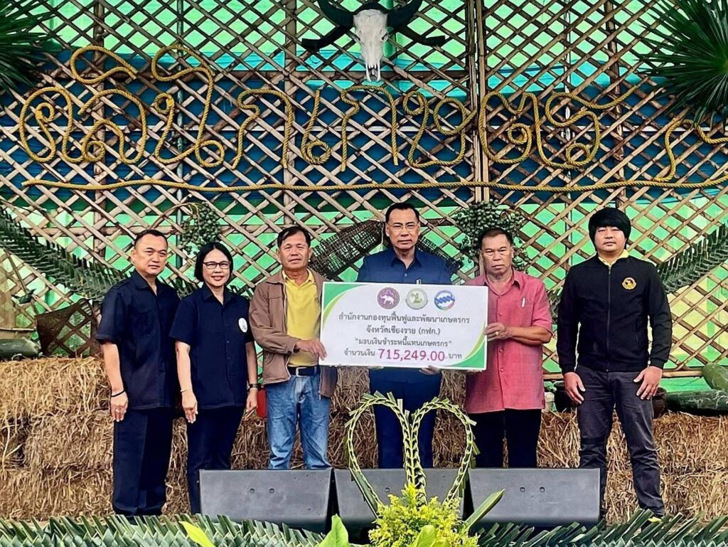 ทั้งนี้ นายชรินทร์ ทองสุข ผู้ว่าราชการจังหวัดเชียงราย เป็นประธานมอบเงิน สำนักงานกองทุนฟื้นฟูและพัฒนาเกษตรกร สาขาจังหวัดเชียงราย (กฟก.) จำนวนเงิน 715,249 บาท เพื่อชำระหนี้แทนเกษตรกร สมาชิกกองทุนฟื้นฟูและพัฒนาเกษตรกร อำเภอแม่สรวย จังหวัดเชียงราย จำนวน 1 ราย ให้กับสหกรณ์การเกษตรแม่สรวย จำกัด โดยมีนายทวี พิมสาร ประธานสหกรณ์ฯ เป็นผู้รับมอบ มีนายชูศักดิ์ อ้อยเฮิง หัวหน้าสำนักงานสภาเกษตรกรจังหวัดเชียงราย อนุกรรมการฯ กฟก. จังหวัดเชียงราย (ภาคราชการ) และนายคมสันต์ ดวงแก้ว อนุกรรมการฯ กฟก.จังหวัดเชียงราย (ผู้เเทนองค์กรเกษตรกร) ร่วมเป็นสักขีพยาน โดยการชำระหนี้แทนเกษตรกร ในครั้งนี้ สามารถรักษาที่ดินทำกินและที่อยู่อาศัย ให้เกษตรกร ซึ่งเกษตรกรได้นำไปเป็นหลักประกันการกู้ยืม กับสหกรณ์ฯเป็นโฉนดที่ดิน จำนวน 3 แปลง เนื้อที่รวม 6 ไร่ 2 งาน 71 ตารางวา