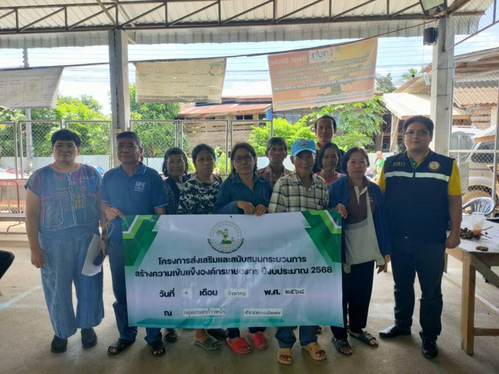 นายธีภัทร รอดเวียง พนักงานกลุ่มงานบริการ ลงพื้นที่จัดประชุมตามโครงการส่งเสริมและสนับสนุนกระบวนการสร้างความเข้มแข็งองค์กรเกษตรกร ปีงบประมาณ 2568 เพื่อสร้างความรู้ความเข้าใจในกระบวนการสร้างความเข้มแข็งให้กับองค์กรเกษตรกรร่วมกันระหว่างสำนักงานกองทุนฟื้นฟูและพัฒนาเกษตรกร อนุกรรมการฯ จังหวัด และสมาชิกองค์กรกลุ่มเกษตรก้าวหน้า