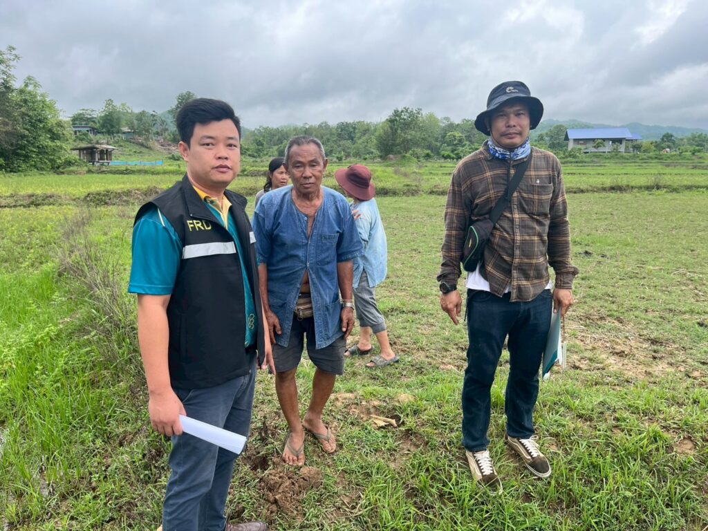 วันที่ 21 พฤษภาคม 2568 นายไพรัช สีวาโย หัวหน้าสำนักงานกองทุนฟื้นฟูและพัฒนาเกษตรกร สาขาจังหวัดแพร่ มอบหมายให้ นายพงศกร กองแก้ว พนักงานทั่วไป นายธีรภัทร รอดเวียง พนักงานกลุ่มงานบริการ ลงพื้นที่ตรวจสอบแนวเขตและลงชื่อรับรองที่ดิน ของเกษตรกร สมาชิกกองทุนฟื้นฟูและพัฒนาเกษตรกร นายสิงหน ฐิตเมธีอริยกุล ที่ดินที่จะทำการรางวัดติดกับที่ดินของกองทุนฯ เลขที่ 18416 ตำบลต้าผามอก อำเภอลอง จังหวัดแพร่ เนื้อที่ 1 ไร่ 0 งาน 25 ตารางวา เจ้าของกรรมสิทธิ์เดิม นายสิงหน ฐิตเมธีอริยกุล