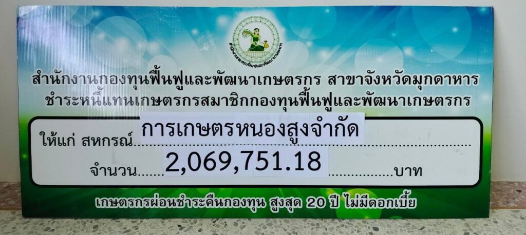 The post กองทุนฟื้นฟูและพัฒนาเกษตรกร มุกดาหาร ชำระหนี้แทนเกษตรกร 14 ราย รักษาที่ดินกว่า 4 ไร่ appeared first on สำนักงานกองทุนฟื้นฟูและพัฒนาเกษตรกร สาขาจังหวัดมุกดาหาร.