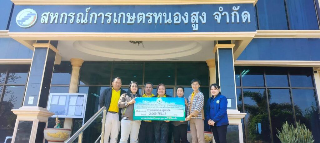 วันที่ 20 มกราคม 2568 นางสุกัญญา ดำโอ หัวหน้าสำนักงานกองทุนฟื้นฟูและพัฒนาเกษตรกร สาขาจังหวัดมุกดาหาร พร้อมด้วยนางสาวอรทัย ไชยชาติ พนักงานทั่วไป นางปรารถนา โพธิวงศ์ นางสาวสุกัญญา สระแก้ว และนางสาวปิยธิดา รูปหล่อ เจ้าหน้าที่สำนักงาน ดำเนินการมอบเช็คชำระหนี้แทนเกษตรกรสมาชิกกองทุนฟื้นฟูและพัฒนาเกษตรกร ให้แก่ สหกรณ์การเกษตรหนองสูง จำกัด จำนวน 14 ราย เป็นเงิน 2,069,751.18 บาท โดยมีนางประมาล หนองสูง ประธานสหกรณ์ฯ และผู้จัดการสหกรณ์ฯ เป็นผู้รับมอบ