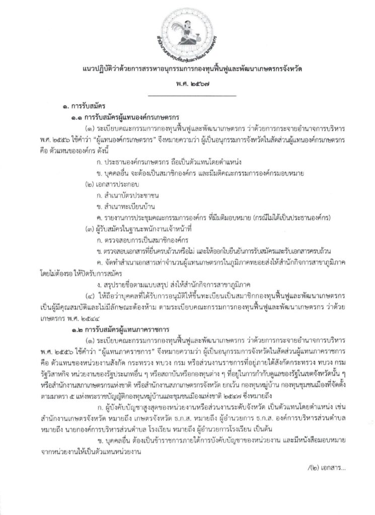 1.4 ให้ใช้แบบฟอร์มใบสมัครหรือใบเสนอชื่อเพื่อคัดเลือกให้ดำรงตำแหน่งอนุกรรมการกองทุนทุนพื้นฟื้นฟูและพัฒนาเกษตรกรจังหวัด