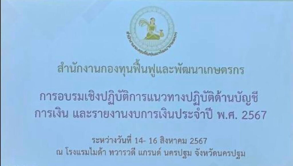 The post “การอบรมเชิงปฎิบัติการแนวทางปฎิบัติด้านบัญชีการเงิน และรายงานงบการเงินประจำปี พ.ศ. 2567 “ appeared first on สำนักงานกองทุนฟื้นฟูและพัฒนาเกษตรกร สาขาจังหวัดสุพรรณบุรี.