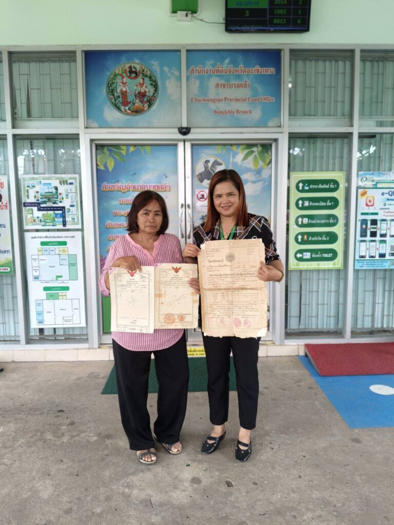 ณ สำนักงานที่ดินจังหวัดฉะเชิงเทรา สาขาบางคล้า