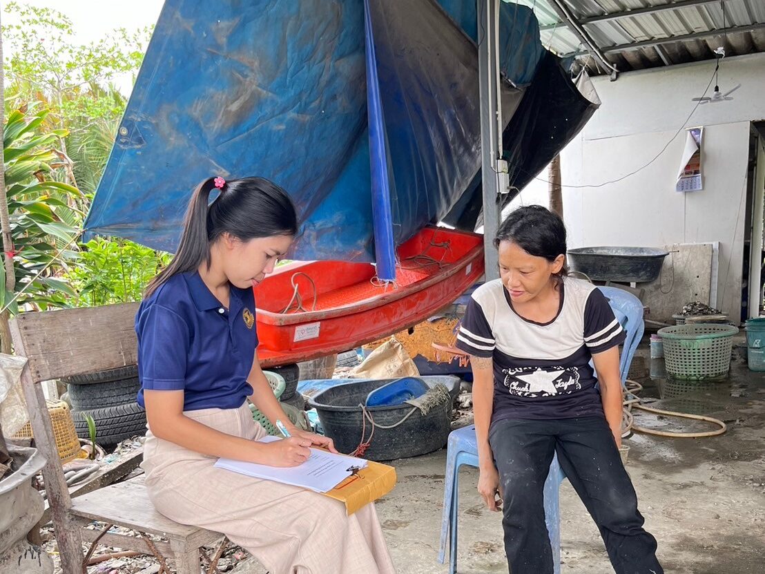 เมื่อวันที่ 2 สิงหาคม 2567 เวลา 13.30 น. นางสาววาสนา สง่างาม หัวหน้าสำนักงานกองทุนฟื้นฟูและพัฒนาเกษตรกร สาขาจังหวัดสมุทรสงคราม มอบหมายให้นางสาวจันทร์ฉัตร วชิรธีระวงศ์ พนักงานทั่วไป ลงพื้นที่เพื่อจัดทำแบบสำรวจตรวจสอบความมีอยู่จริงองค์กรเกษตรกรและสมาชิกกองทุนฟื้นฟูและพัฒนาเกษตรกร และแบบสำรวจคุณภาพชีวิตของเกษตรกรสมาชิกที่เข้าร่วมโครงการกับกองทุนฟื้นฟูและพัฒนาเกษตรกรของกลุ่มเกษตรบางจะเกร็ง จำนวน 5 ราย เพื่อได้ทราบถึงคุณภาพชีวิตว่าเป็นอย่างไรและมีประเด็นใดที่เกษตรกรต้องการรับการสนับสนุนจากสำนักงานกองทุนฟื้นฟูและพัฒนาเกษตรกร หรือไม่อย่างไร ณ ที่ทำการกลุ่มเกษตรบางจะเกร็ง ตำบลบางจะเกร็ง อำเภอเมืองสมุทรสงคราม จังหวัดสมุทรสงคราม