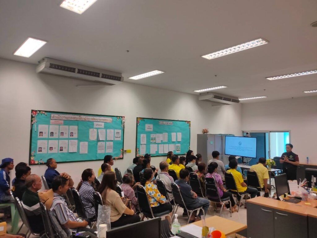 นางสาวดาวใจ คำแสน หัวหน้าสำนักงานกองทุนฟื้นฟูและพัฒนาเกษตรกรสาขาจังหวัดบึงกาฬ เจ้าหน้าที่สำนักงาน และคณะอนุกรรมการกองทุนฟื้นฟูและพัฒนาเกษตรกรจังหวัดบึงกาฬ จัดอบรมโครงการสนับสนุนการพัฒนาแผนหรือโครงการฟื้นฟูและพัฒนาเกษตรกร ประจำปีงบประมาณ 2567