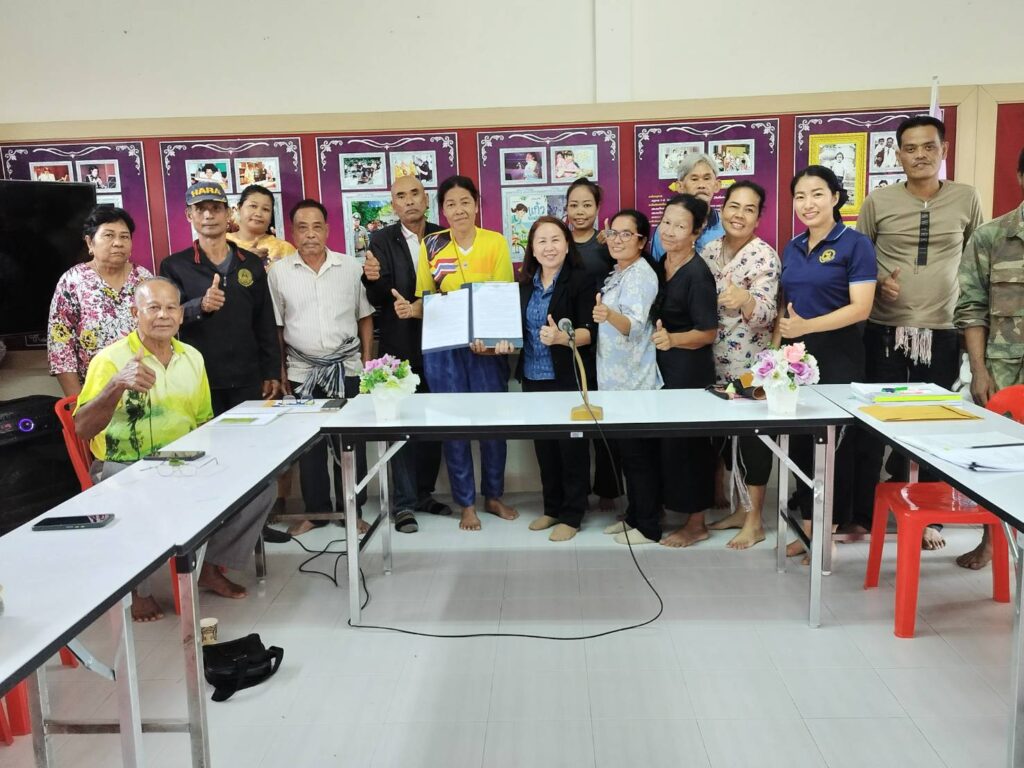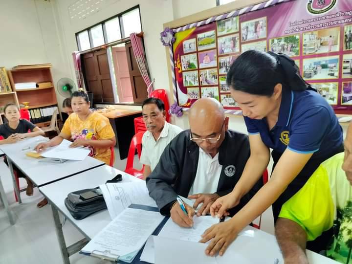 25 มิถุนายน 2567 นางรุ่งทิพย์ นวลขาว หัวหน้าสำนักงาน พร้อมด้วยนางสาวสิริวรรณ อโณทัยสุขวิเศษ ลูกจ้างกลุ่มงานทั่วไป ลงพื้นที่กลุ่มเครือข่ายหมอพื้นบ้านสิริราษฎร์ อำเภอละแม ทำสัญญางบกู้ยืม 500,000 บาท ปลูกพืชสมุนไพรแปรรูปสมุนไพรเพื่อจำหน่าย