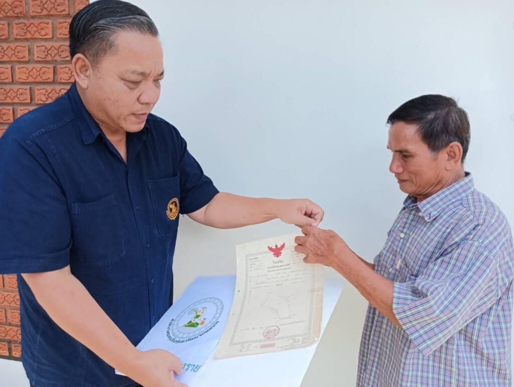 The post นายนิยม สุวรรณประภา หัวหน้าสำนักงานกองทุนฟื้นฟูและพัฒนาเกษตรกร สาขาจังหวัดเชียงราย (กฟก.) ดำเนินการโอนกรรมสิทธิ์ที่ดิน และ มอบโฉนดที่ดินให้เกษตรกร ตำบลจอมสวรรค์ อำเภอแม่จัน จังหวัดเชียงราย จำนวน 1 ราย appeared first on สำนักงานกองทุนฟื้นฟูและพัฒนาเกษตรกร สาขาจังหวัดเชียงราย.