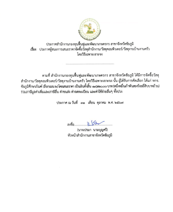 Posted on 11 February 2025 The post ประกาศจัดซื้อจัดจ้าง appeared first on ุสำนักงานกองทุนฟื้นฟูและพัฒนาเกษตรกร สาขาจังหวัดชัยภูมิ. FacebookTwitterLinkedIn