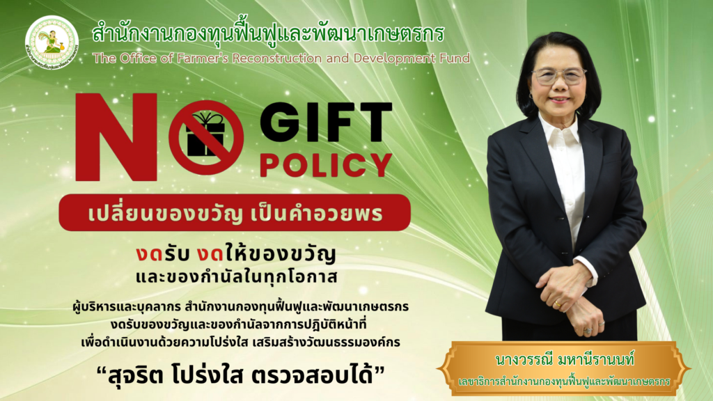 นโยบายการไม่รับของขวัญและของกำนัลทุกชนิดจากการปฏิบัติหน้าที่ (No Gift Policy) สำหรับปีงบประมาณ พ.ศ. 2568