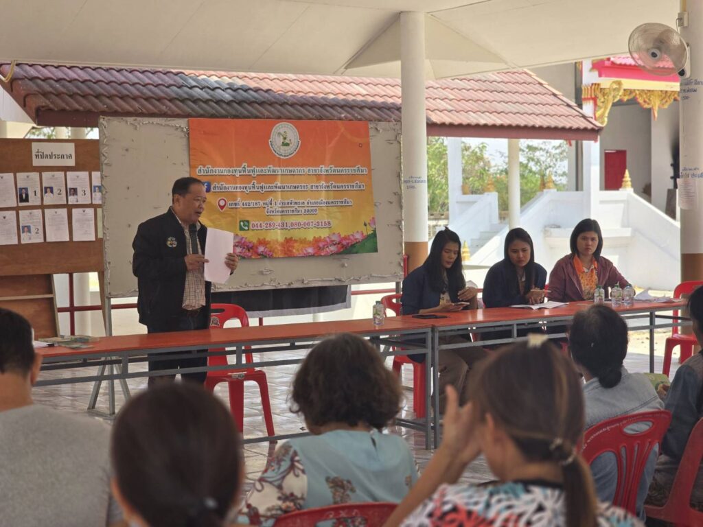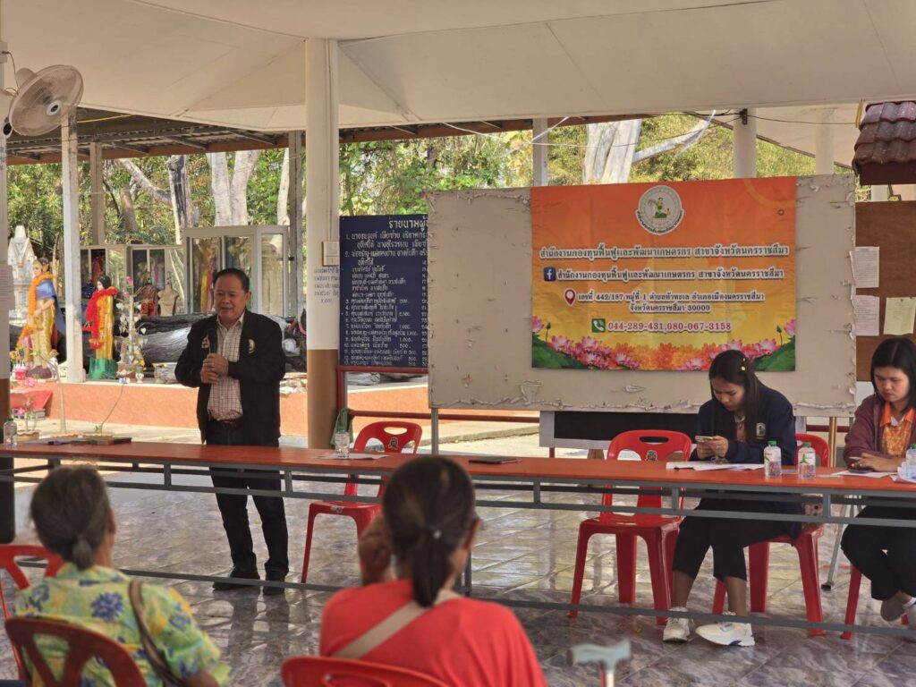 วันพฤหัสบดี ที่ 20 กุมภาพันธ์ 2568 เวลา 10.00 น. นายวัชรางกูร แสนเสริม หัวหน้าสำนักงานกองทุนฟื้นฟูและพัฒนาเกษตรกร สาขาจังหวัดนครราชสีมา พร้อมด้วยเจ้าหน้าที่สำนักงานฯ ลงพื้นที่กลุ่มสตรีทอผ้าหนองกก หมู่ 1 ต.หนองบัวน้อย รหัสองค์กร 3043014073 เพื่อประชาสัมพันธ์ภารกิจการดำเนินงานด้านการฟื้นฟูและพัฒนาเกษตรกร และด้านการจัดการหนี้ของเกษตรกร โดยเกษตรกรสมาชิกให้ความสนใจโครงการแก้ไขปัญหาหนี้สินเกษตรกรสมาชิก กฟก. ลูกหนี้ธนาคารของรัฐ 4 แห่ง และให้บริการขึ้นทะเบียนหนี้เกษตรกร และสมัครสมาชิกเกษตรกรเพื่อเป็นสมาชิกกองทุนฟื้นฟูและพัฒนาเกษตรกร ณ วัดบ้านหนองกก ตำบลหนองบัวน้อย อำเภอสีคิ้ว จังหวัดนครราชสีมา