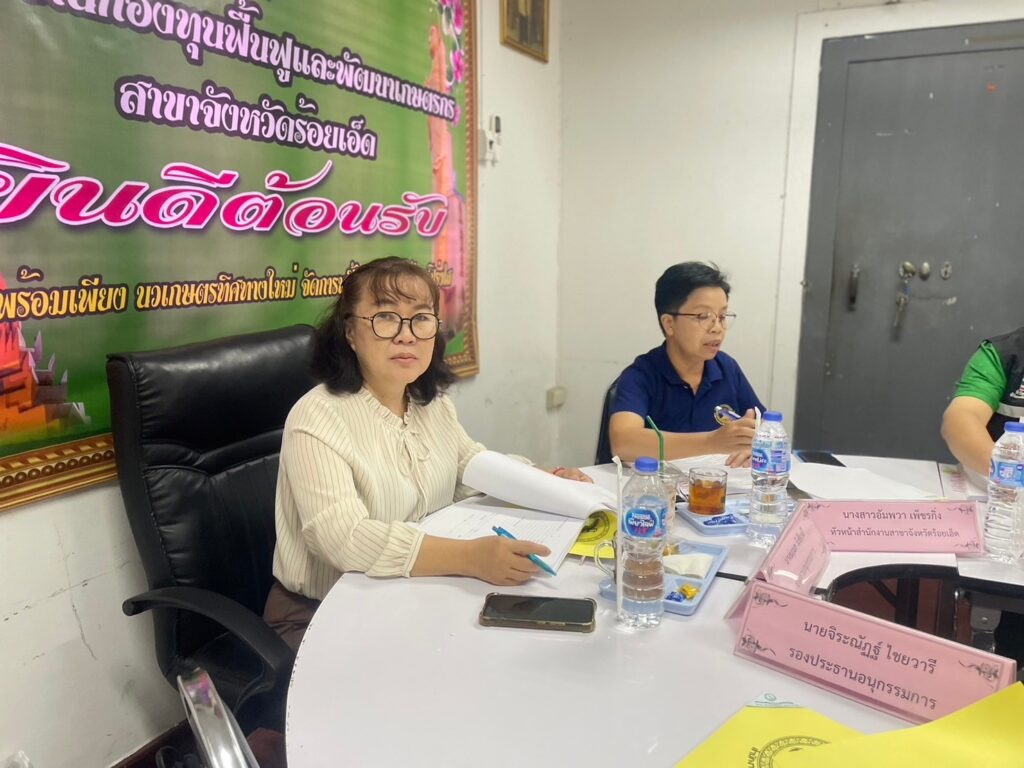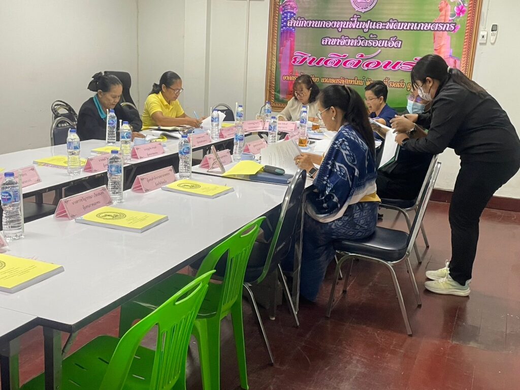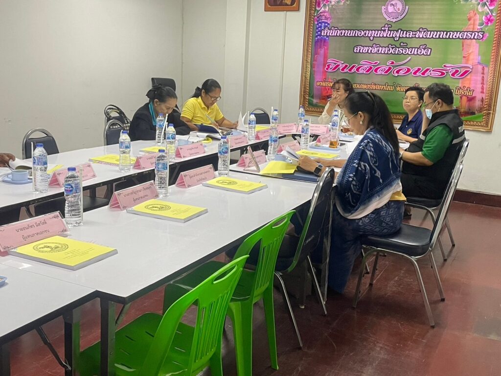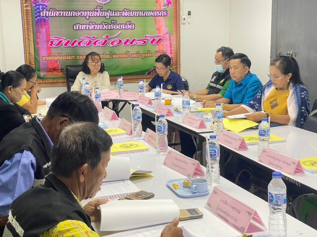 ณ ห้องประชุมสำนักงานกองทุนฟื้นฟูและพัฒนาเกษตรกร สาขาจังหวัดร้อยเอ็ด