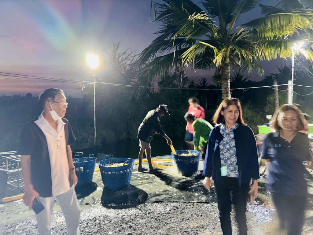 สำนักกิจการสาขาภูมิภาคที่ 2 (ภาคกลาง) นำโดยนางโสมสุดา โพธิ์อินทร์ ผู้อำนวยการฯ พร้อมด้วยนางสาวภัทราพร ไวยิ่งยุทธ หัวหน้าสำนักงานสาขาจังหวัดนครปฐม ลงพื้นที่ติดตามโครงการเลี้ยงกุ้ง (กิจกรรมจับกุ้ง) ของกลุ่มพัฒนายั่งยืน ณ บ่อเลี้ยงกุ้งของสมาชิก ต.ตลาดจินดา อ.สามพราน โดยเริ่มดำเนินการจับกุ้งตั้งแต่เวลา 18.00 น. เป็นต้นไป ซึ่งกิจกรรมจับกุ้งดำเนินการเป็นไปด้วยความเรียบร้อยและองค์กรนำผลผลิตที่ได้ไปจำหน่าย ณ ตลาดมหาชัย จ.สมุทรสาคร