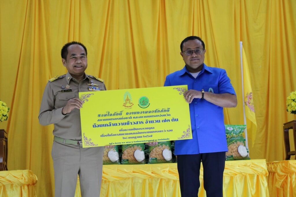 นายชัชวาลย์ เบญจสิริวงศ์ รองผู้ว่าราชการจังหวัดร้อยเอ็ด รักษาราชการแทนผู้ว่าราชการจังหวัดร้อยเอ็ด ประธานกรรมการมูลนิธิราชประชานุเคราะห์ประจำจังหวัดร้อยเอ็ด เป็นประธานโครงการเฉลิมพระเกียรติ “ร่วมใจภักดิ์ ถวายความจงรักภักดี” น้อมเกล้าน้อมกระหม่อมถวาย ข้าวสาร จำนวน 73 ตัน เพื่อเป็นพระราชกุศลแด่พระบาทสมเด็จพระเจ้าอยู่หัว โดยมี นายพิชัยยา ตุระซอง รองผู้ว่าราชการจังหวัดร้อยเอ็ด, นายประจักร์ บุญกาพิมพ์ ประธานสภาเกษตรกรจังหวัด พร้อมด้วย สมาชิกสภาเกษตรกรแห่งชาติ สภาเกษตรกรจังหวัด และนักเรียน นักศึกษา เข้าร่วม ที่ โรงเรียนราชประชานุเคราะห์ 63 จังหวัดร้อยเอ็ด ตำบลนิเวศน์ อำเภอธวัชบุรี จังหวัดร้อยเอ็ด