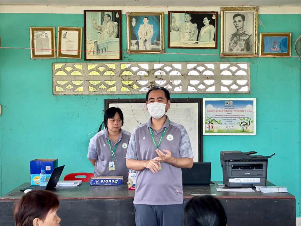 สำนักงานกองทุนฟื้นฟูและพัฒนาเกษตรกร สาขาจังหวัดนครปฐมนำโดยนางสาวภัทราพร ไวยิ่งยุทธ หัวหน้าสำนักงานฯ นายภาณุ ซื่อสัตย์ พนักงานอาวุโส และพนักงาน สาขาจังหวัดนครปฐม ร่วมประชุมชี้แจงแนวทางการจัดตั้งองค์กรเกษตรกรใหม่ และ ประชาสัมพันธ์การขึ้นทะเบียนเกษตรกรให้กับกลุ่มเกษตรกร ตำบลดอนข่อย ณ ศาลาประจำหมู่บ้าน บ้านใหม่โพธิ์ศรี ต.ดอนข่อย อ.กำแพงแสน จ.นครปฐม