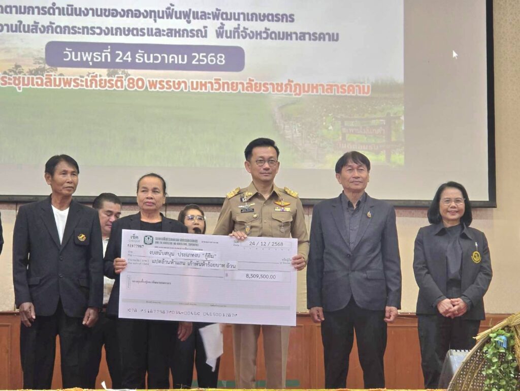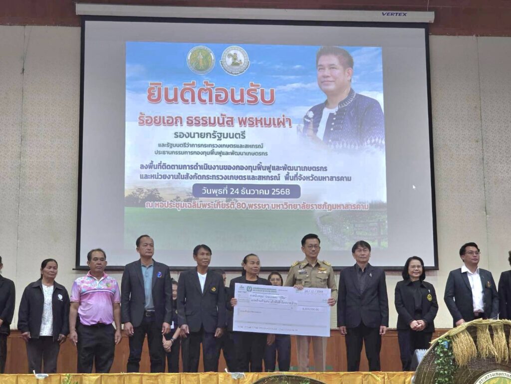 วันที่ 24 ธันวาคม 2568 กองทุนฟื้นฟูและพัฒนาเกษตรกร จัดโครงการประชาสัมพันธ์เชิงรุกเพื่อสร้างเครือข่ายความร่วมมือในพื้นที่จังหวัดมหาสารคาม ณ มหาวิทยาลัยราชภัฏมหาสารคาม โดยมี ร.อ. ธรรมนัส พรหมเผ่า รองนายกรัฐมนตรีและรัฐมนตรีว่าการกระทรวงเกษตรและสหกรณ์ ในฐานะประธานกรรมการกองทุนฟื้นฟูและพัฒนาเกษตรกร เป็นประธานในกิจกรรม