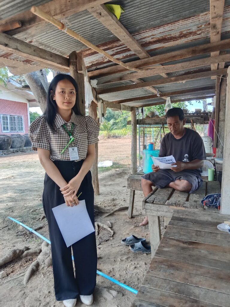 พร้อมด้วยนางสาววิณิชา จวบนก ลูกจ้างกลุ่มงานทั่วไป ลงพื้นที่ตรวจเยี่ยมเกษตรกรที่ได้ชำระหนี้แทนเกษตรกร