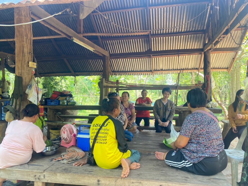 พร้อมด้วย นางสาวจิราภรณ์ นาโสก เจ้าหน้าที่สำนักงาน และนางสาวสุกัญญา สระแก้ว เจ้าหน้าที่โครงการฯ ลงพื้นที่ติดตามความก้าวหน้าในการดำเนินงานโครงการฟื้นฟูและพัฒนาเกษตรกร