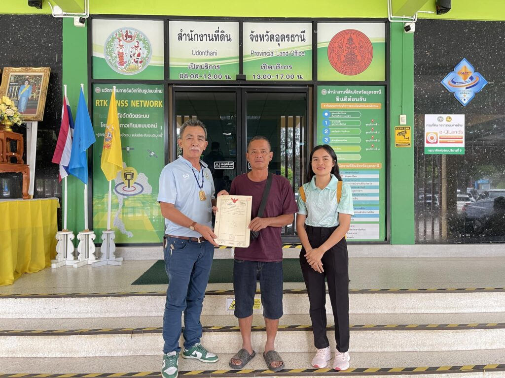 สำนักงานกองทุนฟื้นฟูและพัฒนาเกษตรกร สาขาจังหวัดอุดรธานี โดยมีนายสุริยันต์ เวียงเหล็กธาดา หัวหน้าสำนักงานกองทุนฟื้นฟูและพัฒนาเกษตรกร พร้อมนางสาววราภรณ์ คำทะลาด ลูกจ้างกลุ่มงานทั่วไป นางสาวอรทัย ทวีคูณ และนางสาวสินีนาฎ ภูมิมิตร ลูกจ้างโครงการเร่งรัดหนี้ฯ ลงพื้นที่มอบเช็คชำระหนี้แทนเกษตรกรสมาชิกกองทุนฟื้นฟูฯ สถาบันเจ้าหนี้ สหกรณ์การเกษตรเมืองอุดรธานี จำกัด จำนวน 1 ราย มูลหนี้ 905,581.44 บาท พร้อมโอนกรรมสิทธิ์โฉนดที่ดิน จำนวน 2 แปลง เนื้อที่ทั้งหมด 0 ไร่ 1 งาน 72 ตร.ว เพื่อรักษาที่ทำกินของเกษตรกร ณ สำนักงานที่ดินจังหวัดอุดรธานี จังหวัดอุดรธานี