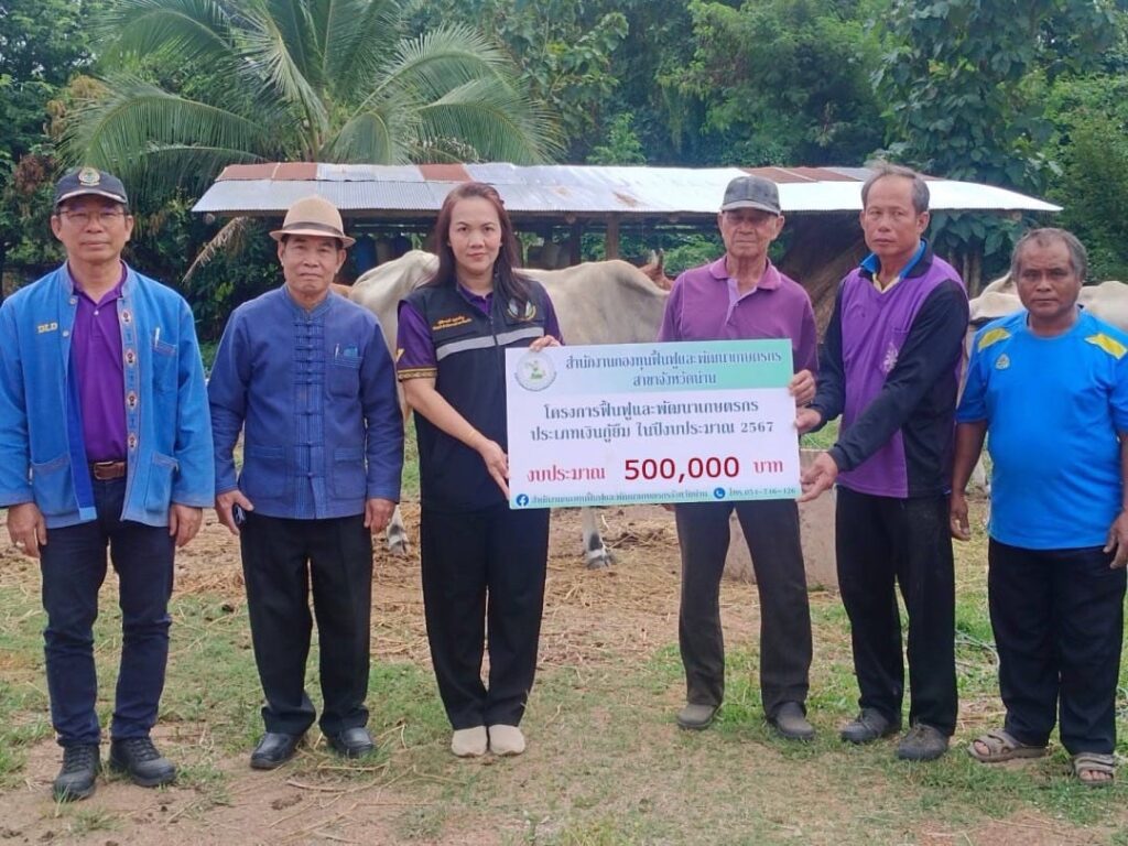 วันที่ 6 พฤศจิกายน 2567 เวลา 09.30 น. นางณัติกานต์ บุญเจริญ หัวหน้าสำนักงานกองทุนฟื้นฟูและพัฒนาเกษตรกร สาขาจังหวัดน่าน พร้อมด้วยนายวุฒิพันธุ์ เนตรวิชัย ปศุสัตว์จังหวัดน่าน/อนุกรรมการฯ จังหวัดน่าน นายวุฒิไกร กุลกัลชัย รองประธานอนุกรรมการฯ จังหวัดน่าน และนายวัชรพงษ์ พญาพรหม ปศุสัตว์อำเภอเมืองน่าน ลงพื้นที่ร่วมส่งมอบปัจจัยการผลิต (งวดที่ 1) ให้กับองค์กรเกษตรกร กลุ่มเลี้ยงสัตว์บ้านซาวหลวง ตามที่องค์กรเกษตรกรได้รับอนุมัติโครงการฟื้นฟูและพัฒนาเกษตรกร งบประมาณประจำปี 2567 ประเภทงบกู้ยืม ชื่อโครงการ “เลี้ยงวัว” งบประมาณที่ได้รับ 500,000 บาท สมาชิกเข้าร่วมโครงการ 10 คน ระยะเวลาดำเนินกิจกรรม 7 ปี (ปลอดดอกเบี้ย) ณ บ้านซาวหลวง หมู่ 5 ตำบลบ่อสวก อำเภอเมืองน่าน จังหวัดน่าน