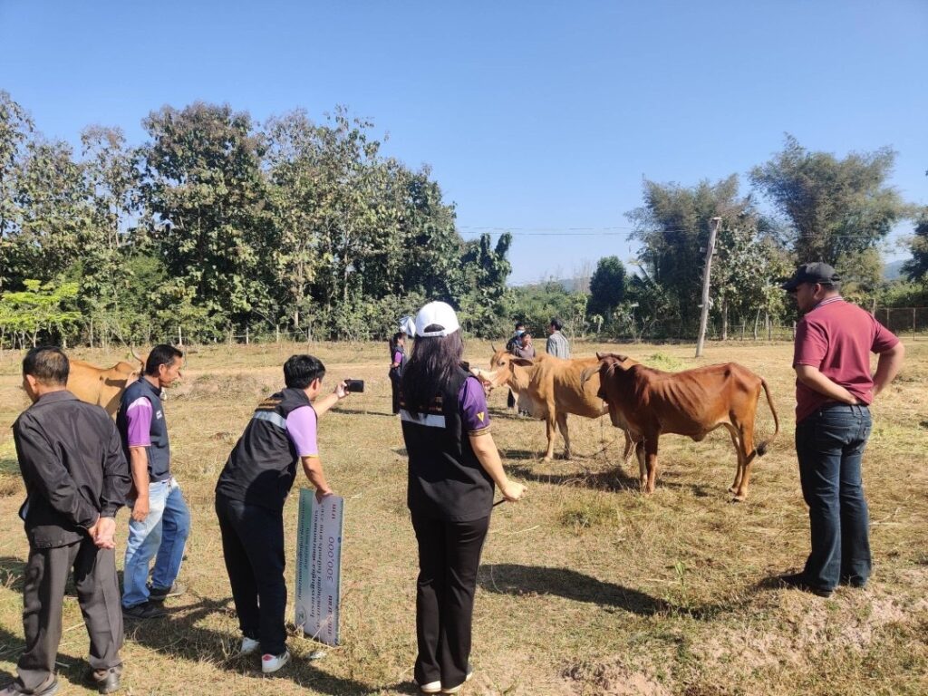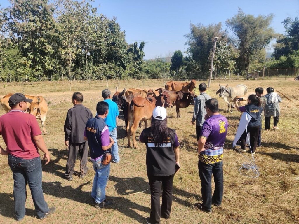 วันที่ 4 ธันวาคม 2567 เวลา 09.30 น. นางณัติกานต์ บุญเจริญ หัวหน้าสำนักงานกองทุนฟื้นฟูและพัฒนาเกษตรกร สาขาจังหวัดน่าน พร้อมด้วยนายชมพล พรหมกามินทร์ อนุกรรมการฯ จังหวัดน่าน ลงพื้นที่อำเภอนาน้อย เพื่อส่งมอบปัจจัยการผลิต (งวดที่ 2) จำนวนเงิน 300,000 บาท ให้กับองค์กรเกษตรกร กลุ่มพัฒนาเกษตรกรบ้านนาราบ ตามที่องค์กรเกษตรกรได้รับอนุมัติโครงการฟื้นฟูและพัฒนาเกษตรกร งบประมาณประจำปี 2567 ประเภทงบกู้ยืม ชื่อโครงการ “เลี้ยงโคแม่พันธุ์ลูกผสมบราห์มัน” งบประมาณที่ได้รับ 900,000 บาท สมาชิกเข้าร่วมโครงการ 10 คน ระยะเวลาดำเนินกิจกรรม 7 ปี (ปลอดดอกเบี้ย) ณ บ้านนาราบ หมู่ 1 ตำบลนาน้อย อำเภอนาน้อย จังหวัดน่าน
