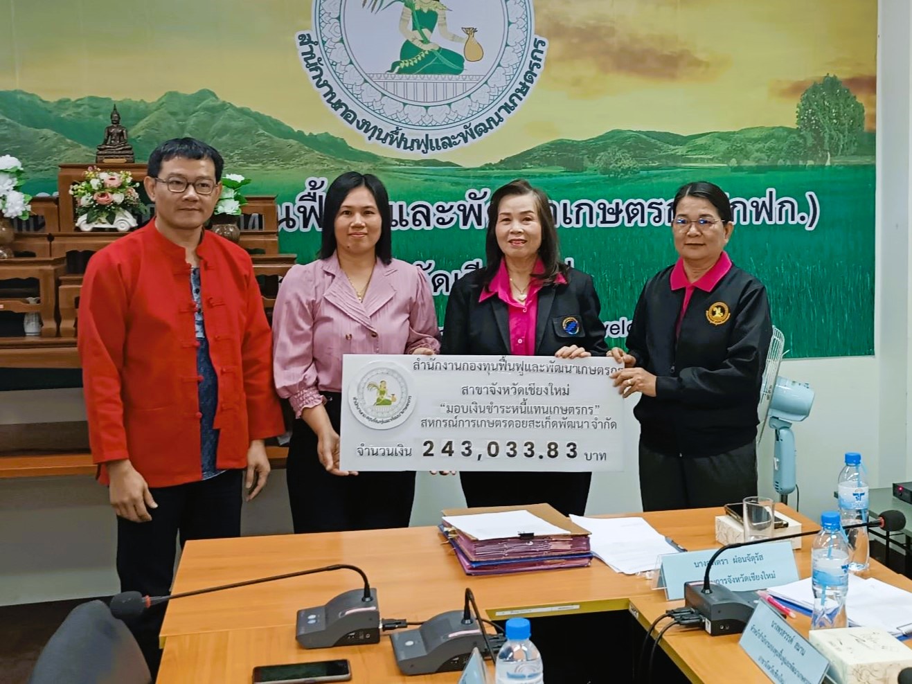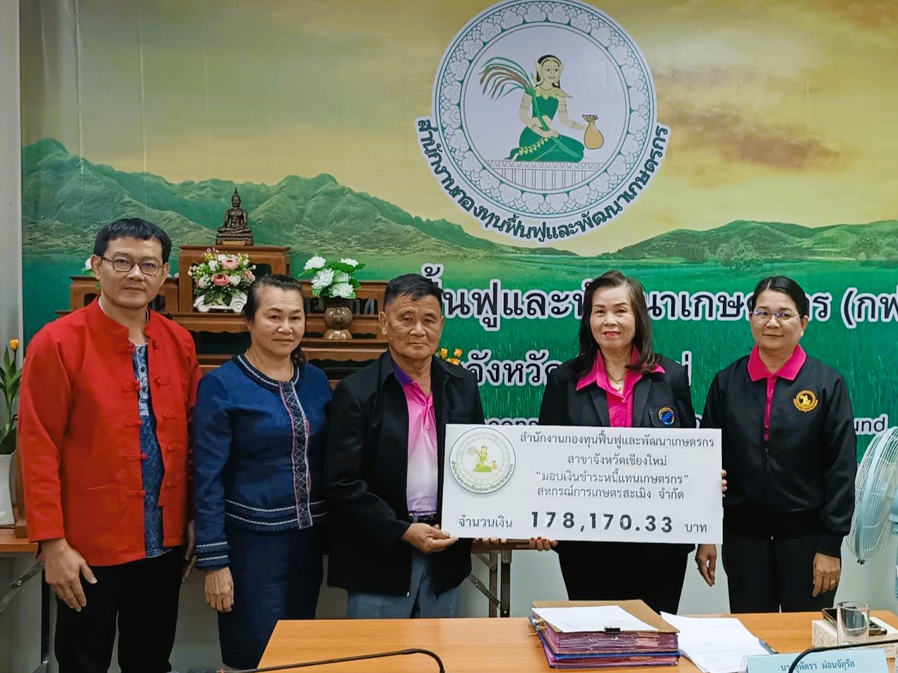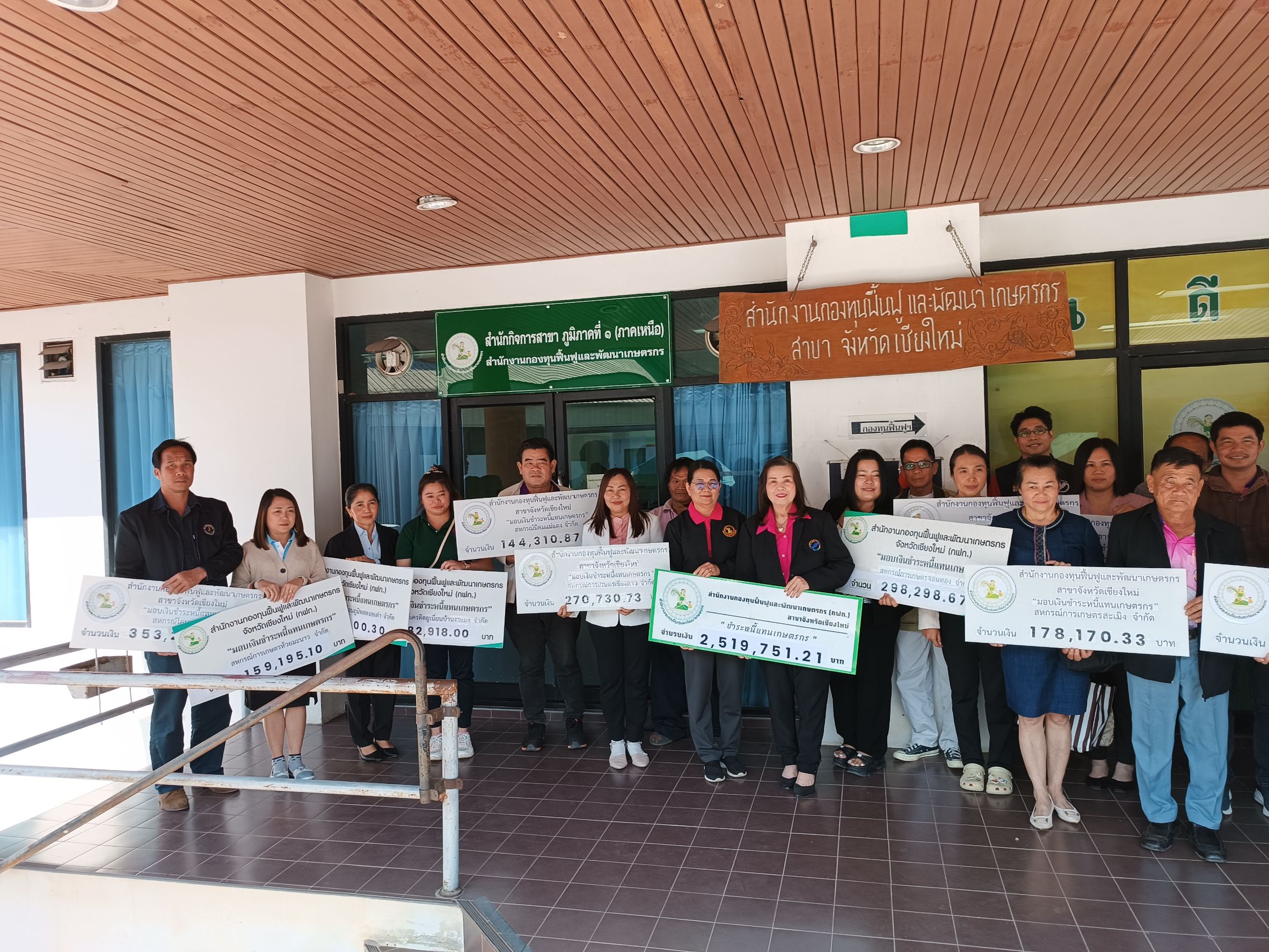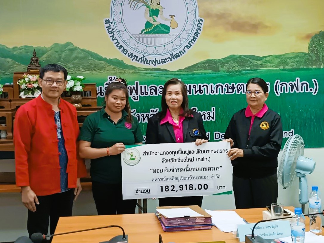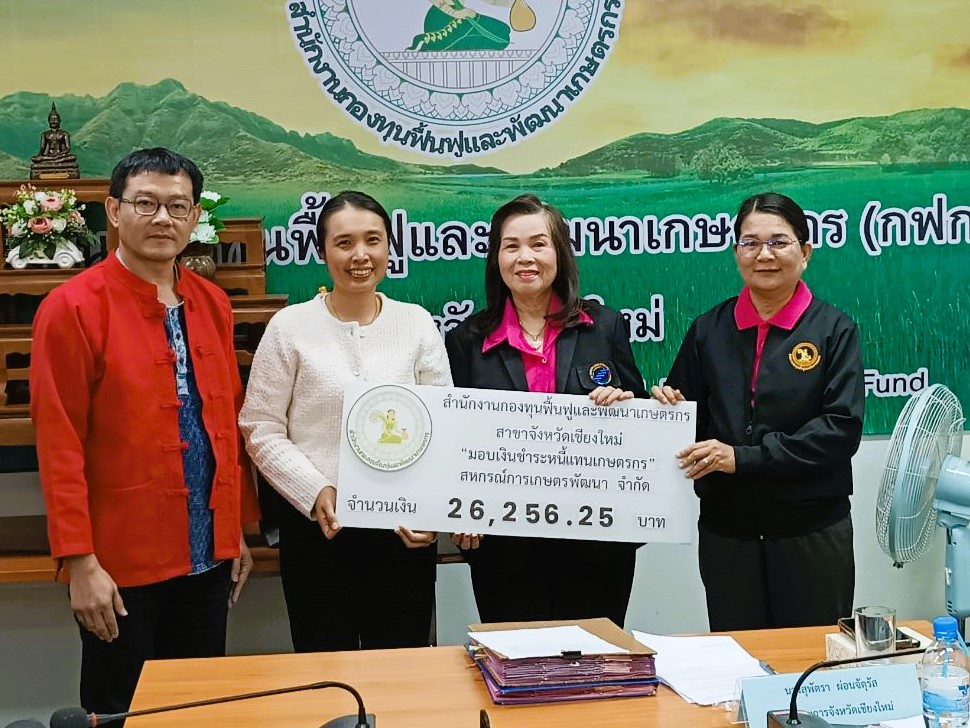 วันที่ 14 มกราคม 2568 สำนักงานกองทุนฟื้นฟูและพัฒนาเกษตรกร สาขาจังหวัดเชียงใหม่ พร้อมด้วย นางสุพัตรา ผ่อนจตุรัส อนุกรรมการสาขาจังหวัดเชียงใหม่ และนายเอกบดี จันภักษานนท์ นักวิชาการสหกรณ์ชำนาญการพิเศษ ปฏิบัติราชการแทนสหกรณ์จังหวัดเชียงใหม่ ได้มอบเช็คชำระหนี้แทนเกษตรกรชำระหนี้แทนเกษตรกร กรณีหนี้บุคคลค้ำประกัน (สหกรณ์ฯ) ให้กับเกษตรกรสมาชิกจำนวน 19 ราย 12 สหกรณ์ รวมจำนวนเงิน 2,519,751.21 บาท ดังนี้