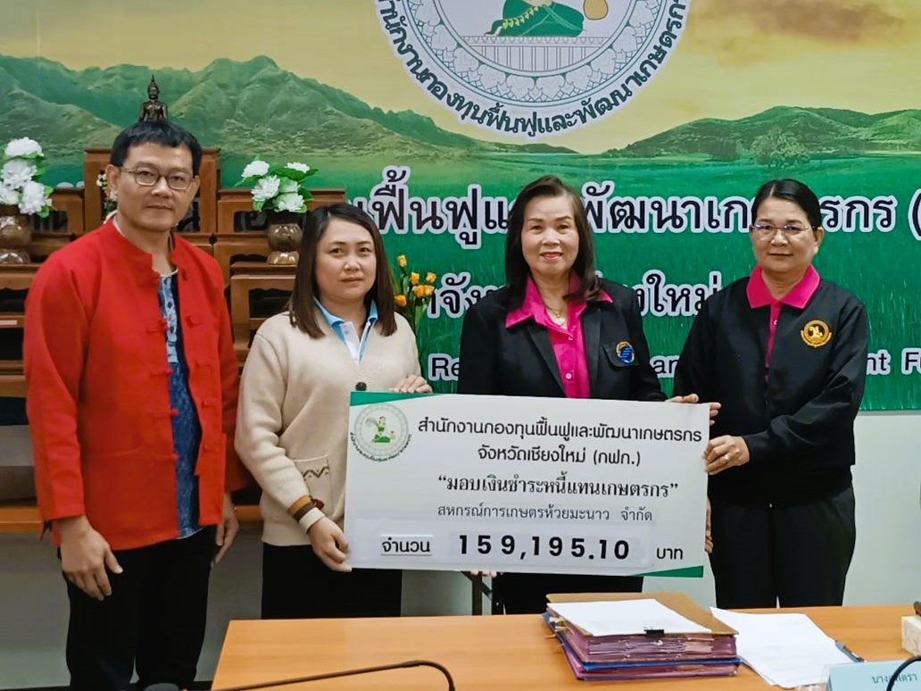 - สหกรณ์การเกษตรห้วยมะนาว จำกัด จำนวน 1 ราย รวมจำนวนเงิน 159,195.10 บาท