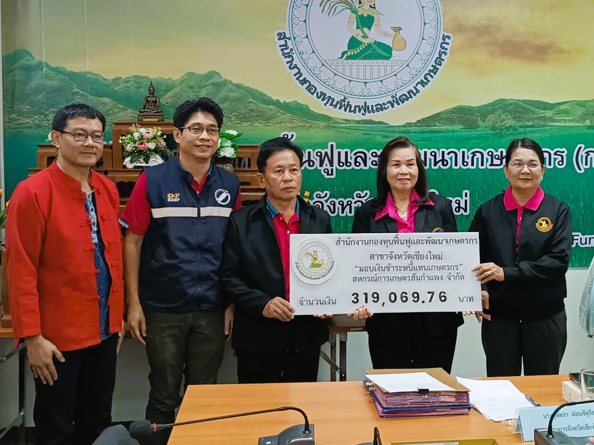 - สหกรณ์การเกษตรสันกำแพง จำกัด จำนวน 1 ราย รวมจำนวนเงิน 319,069.76 บาท