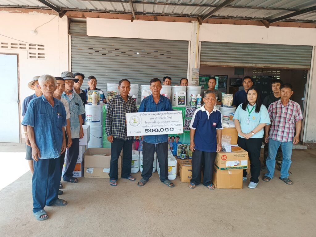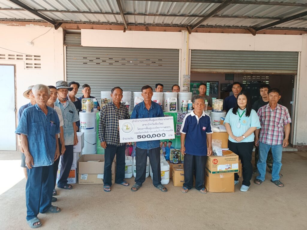 วันที่ 17 ตุลาคม 2567 เวลา 11.00 น. นางพรสวรรค์ สมาน หัวหน้าสำนักงานกองทุนฟื้นฟูและพัฒนาเกษตรกร สาขาจังหวัดเชียงใหม่ (กฟก.) ได้มอบหมายนางสาวธัญวรัตน์ มีธรรมะ พนักงานทั่วไป นายเอกพันธ์ จันทร ลูกจ้างกลุ่มงานทั่วไป และนายจีระณัฐ จอมเมือง ลูกจ้างกลุ่มงานบริการ โดย องค์กรเกษตรกร กลุ่มเพิ่มประสิทธิภาพการผลิตถั่วเหลืองหนองปิด ได้รับอนุมัติงบประมาณ (งบกู้ยืม) ปี พ.ศ. 2567 ตามโครงการ “ปรับปรุงและฟื้นฟูสวนมะม่วงและลำไยเพื่อผลผลิตที่ยั่งยืน” จำนวนเงิน 500,000 บาท โดยองค์กรได้เบิกจ่ายงบประมาณ จำนวน 2 งวด ในงวดที่ 2 เบิกจ่ายเป็นเงิน 199,000 บาท มีสมาชิกเข้าร่วมโครงการฯ จำนวน 17 ราย และองค์กรเกษตรกร มีแผนการชำระคืนเงิน “กองทุนฟื้นฟูและพัฒนาเกษตรกร” ระยะเวลา 5 ปี ไม่มีดอกเบี้ย ณ ศาลาเอนกประสงค์บ้านหนองปิด-ดงป่าข่า หมู่ที่ 2 ต.สันทราย อ.พร้าว จ.เชียงใหม่