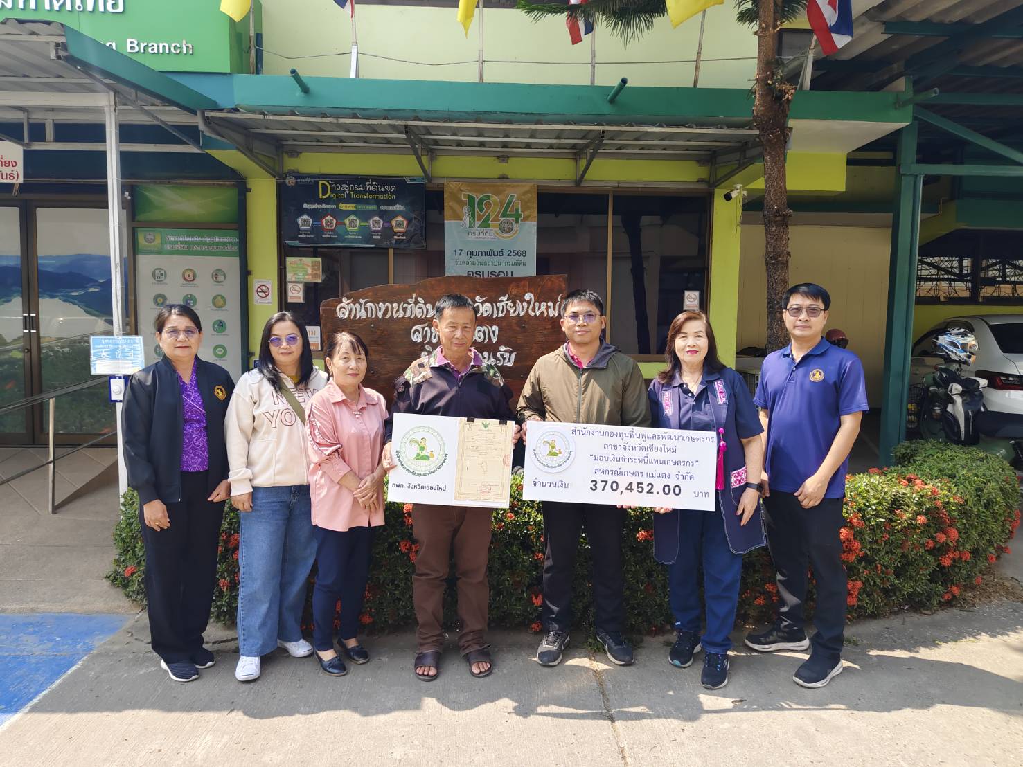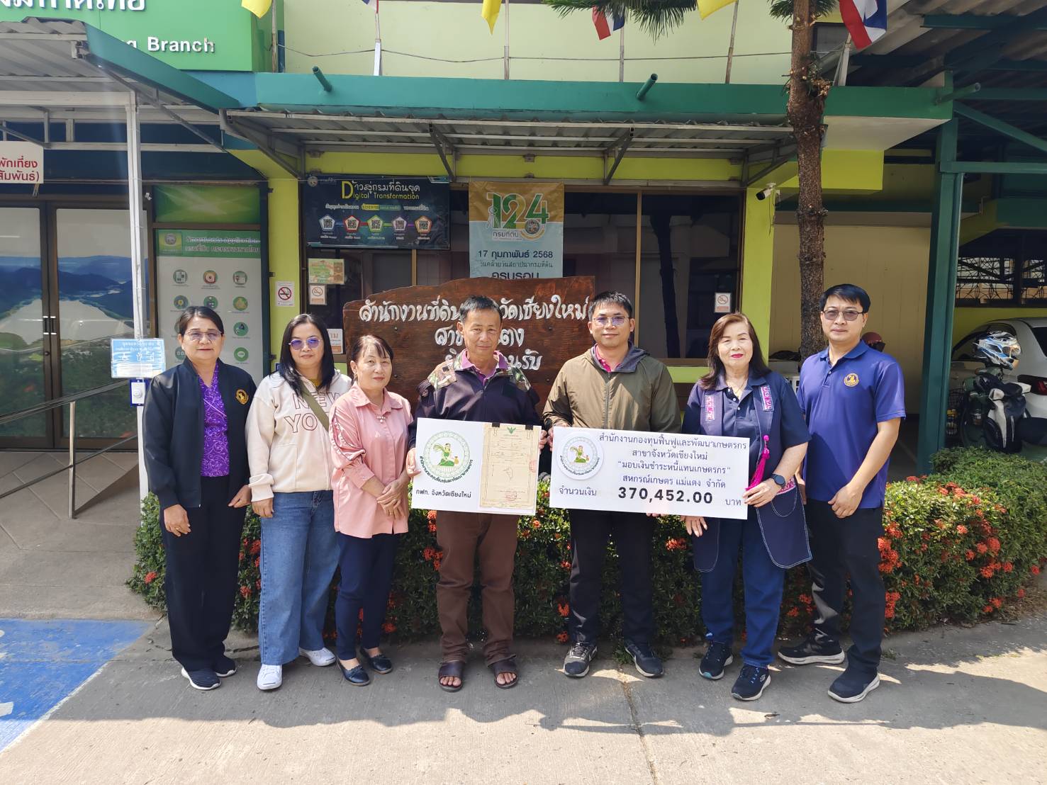 วันที่ 18 กุมภาพันธ์ 2568 นางพรสวรรค์ สมาน หัวหน้าสำนักงานกองทุนฟื้นฟูและพัฒนาเกษตรกร สาขาจังหวัดเชียงใหม่ มอบเงินชำระหนี้แทน กรณีหลักทรัพย์ค้ำประกัน ให้กับเกษตรกรสมาชิก จำนวน 1 ราย โดยมีนางสุพัตรา ผ่อนจตุรัส ประธานอนุกรรมการ จังหวัดเชียงใหม่ ร่วมมอบเงินจำนวน 370,452.00 แก่สถาบันเจ้าหนี้ (สหกรณ์) จำนวน 1 แห่งดังนี้