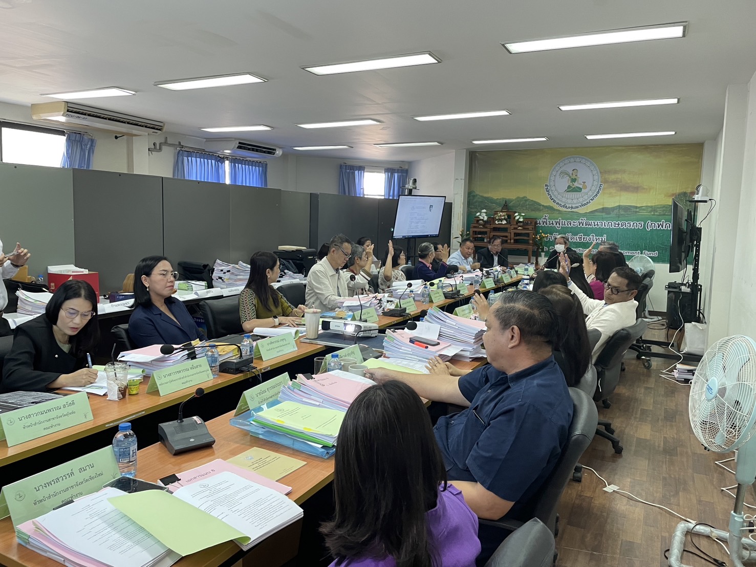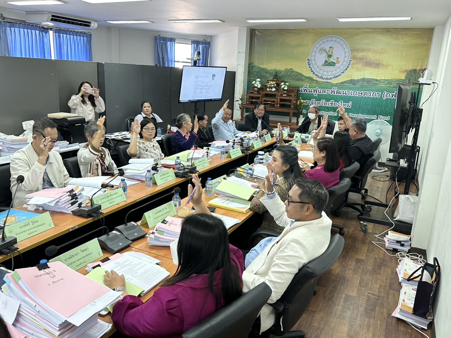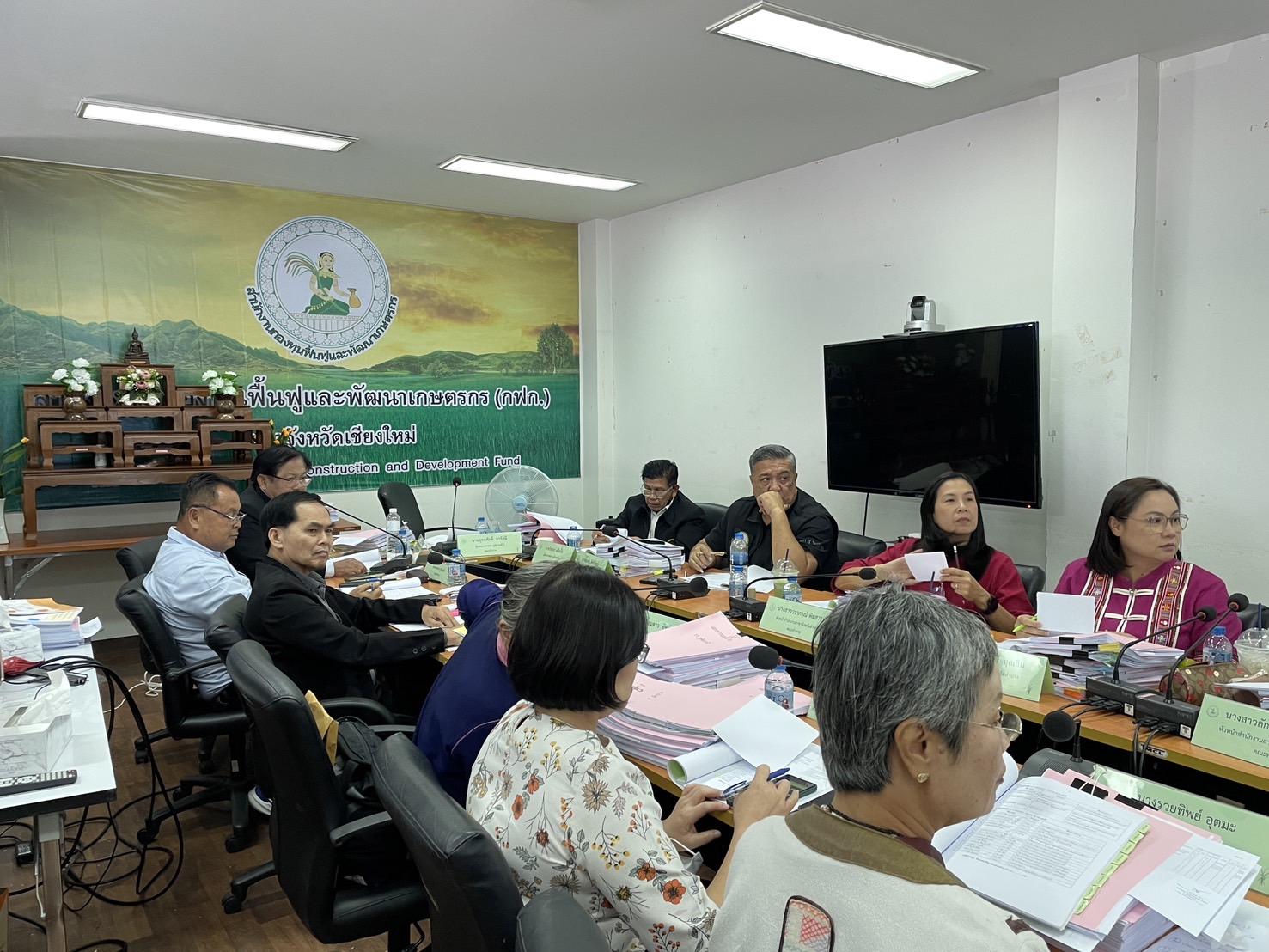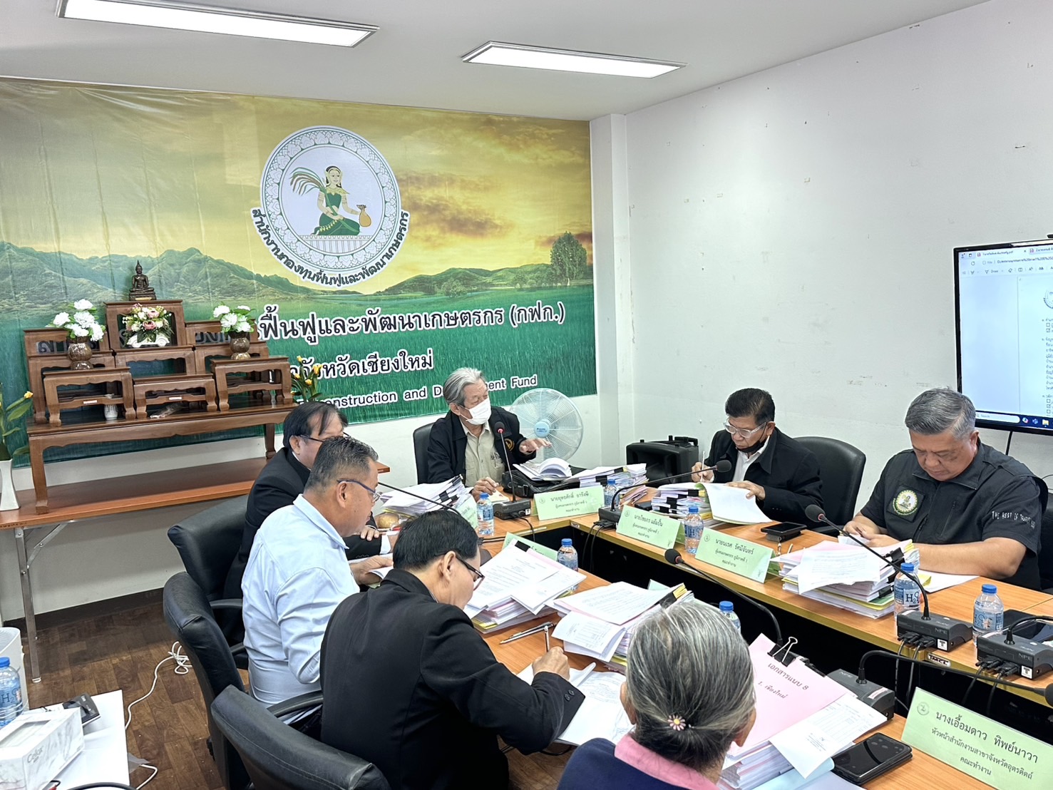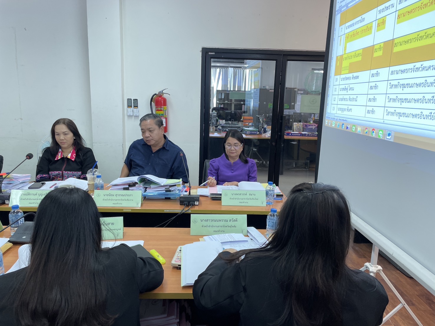 นางพรสวรรค์ สมาน หัวหน้าสำนักงานกองทุนฟื้นฟูและพัฒนาเกษตรกร สาขาจังหวัดเชียงใหม่ (กฟก.) เข้าร่วมประชุมสรรหาผู้แทนภาคราชการและผู้แทนภาคเอกชนเป็นอนุกรรมการกองทุนฟื้นฟูและพัฒนาเกษตรกรจังหวัด ภูมิภาคที่ 1 (ภาคเหนือ) พร้อมด้วยหัวหน้าสำนักงานสาขาจังหวัด ภาคเหนือ 17 จังหวัด โดยมีนายยุทธศักดิ์ ยารังษี ผู้แทนเกษตรกร ภูมิภาคที่ 1 เป็นประธาน และมีนายรัตนกุล โพธิ ผู้อำนวยการสำนักกิจการสาขาภูมิภาคที่ 1 ทำหน้าที่เลขานุการฯ ณ ห้องประชุม สำนักงานกองทุนฟื้นฟูและพัฒนาเกษตรกร สาขาจังหวัดเชียงใหม่