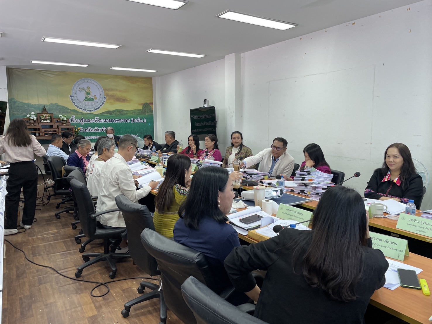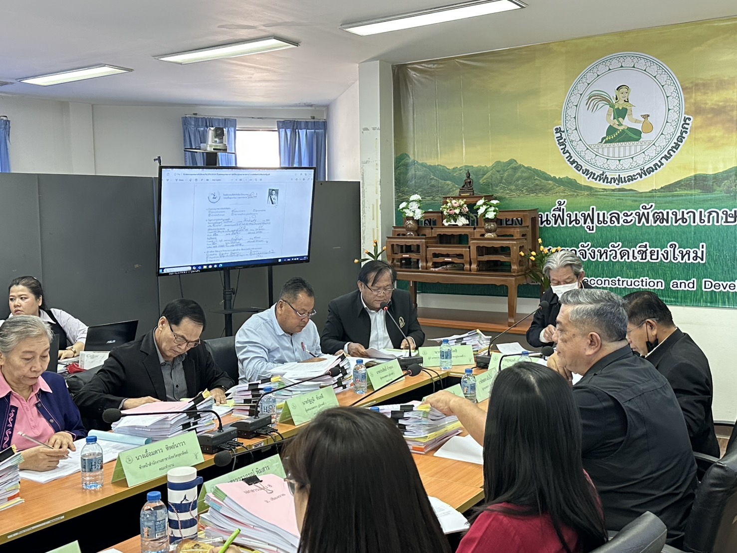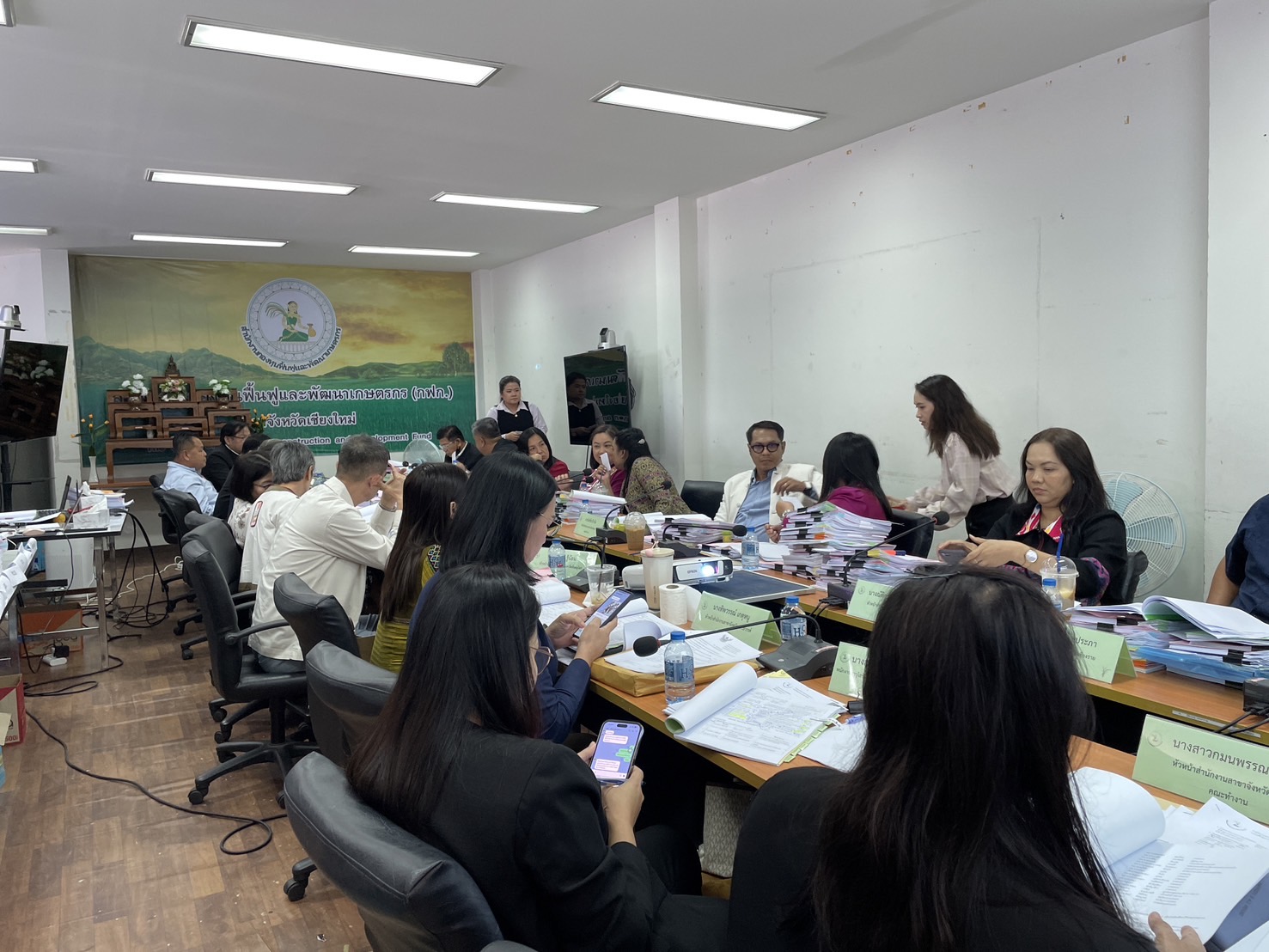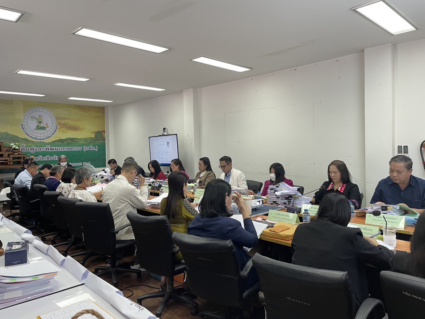 นางพรสวรรค์ สมาน หัวหน้าสำนักงานกองทุนฟื้นฟูและพัฒนาเกษตรกร สาขาจังหวัดเชียงใหม่ (กฟก.) เข้าร่วมประชุมสรรหาผู้แทนภาคราชการและผู้แทนภาคเอกชนเป็นอนุกรรมการกองทุนฟื้นฟูและพัฒนาเกษตรกรจังหวัด ภูมิภาคที่ 1 (ภาคเหนือ) พร้อมด้วยหัวหน้าสำนักงานสาขาจังหวัด ภาคเหนือ 17 จังหวัด โดยมีนายยุทธศักดิ์ ยารังษี ผู้แทนเกษตรกร ภูมิภาคที่ 1 เป็นประธาน และมีนายรัตนกุล โพธิ ผู้อำนวยการสำนักกิจการสาขาภูมิภาคที่ 1 ทำหน้าที่เลขานุการฯ ณ ห้องประชุม สำนักงานกองทุนฟื้นฟูและพัฒนาเกษตรกร สาขาจังหวัดเชียงใหม่