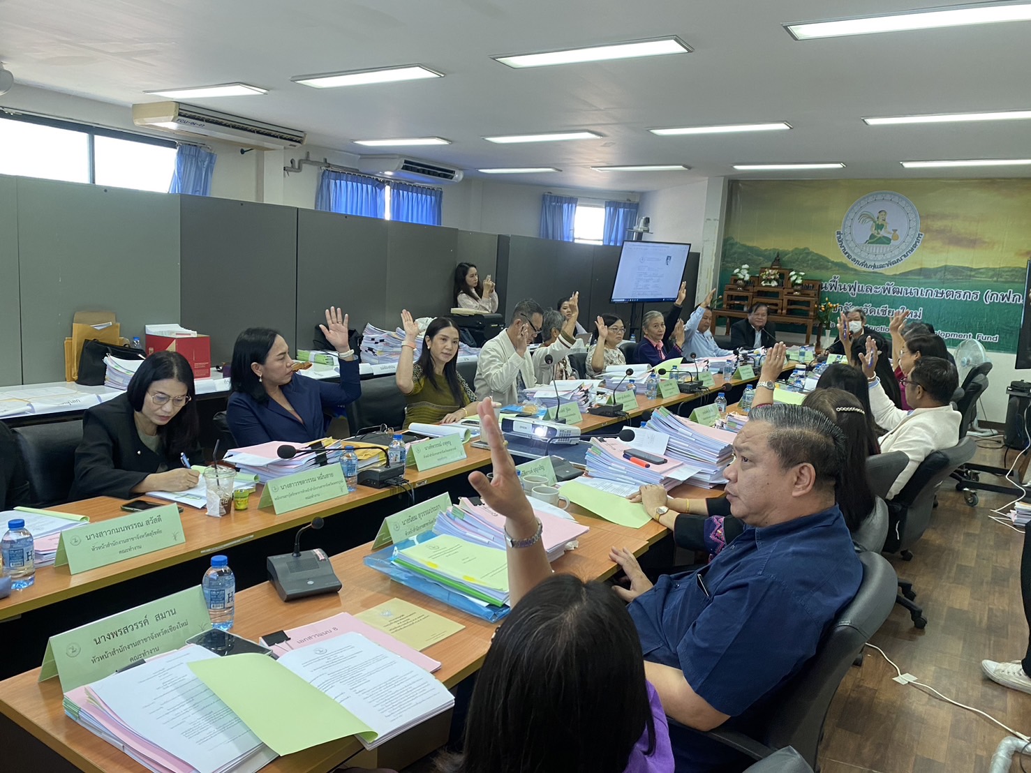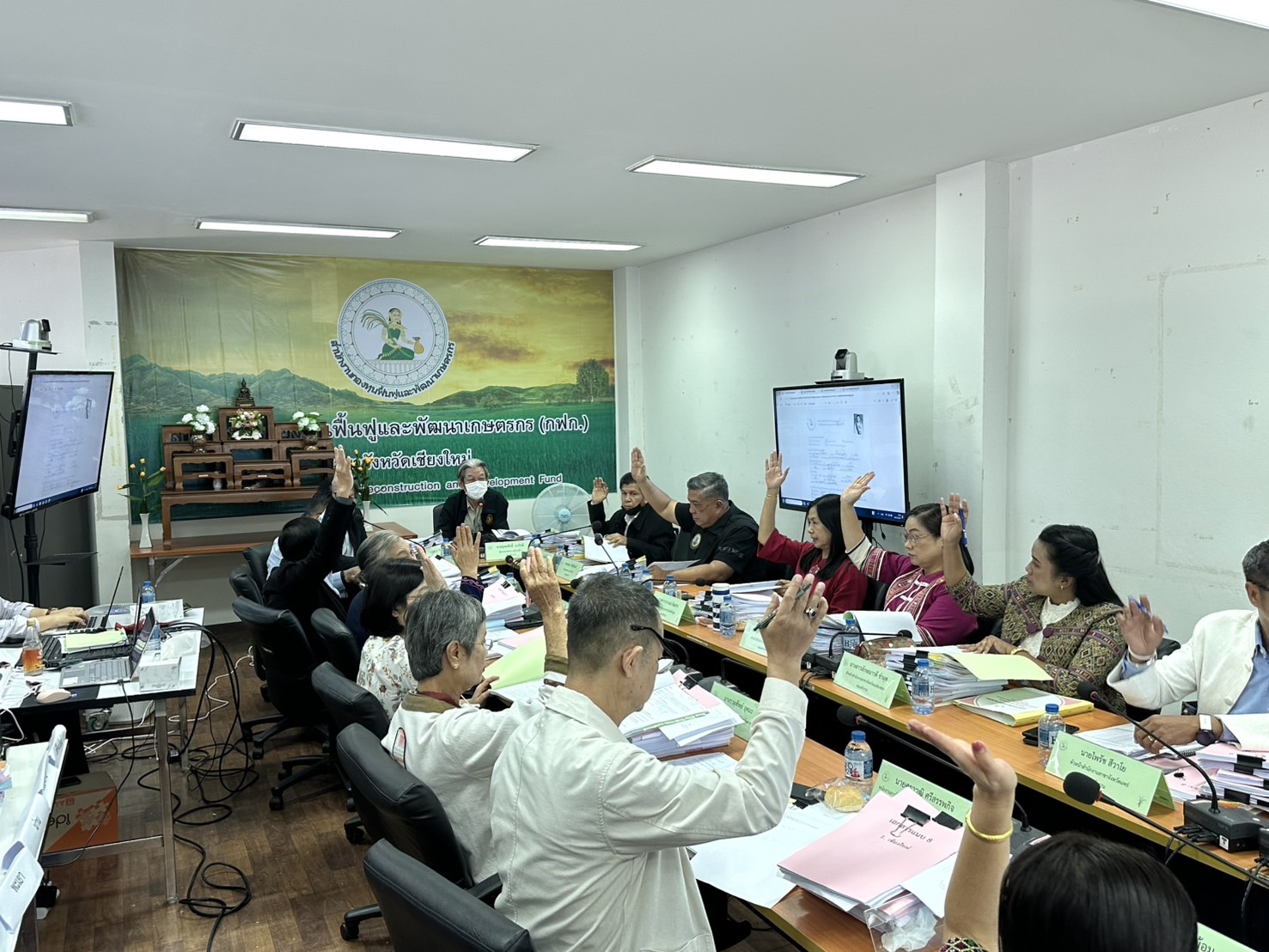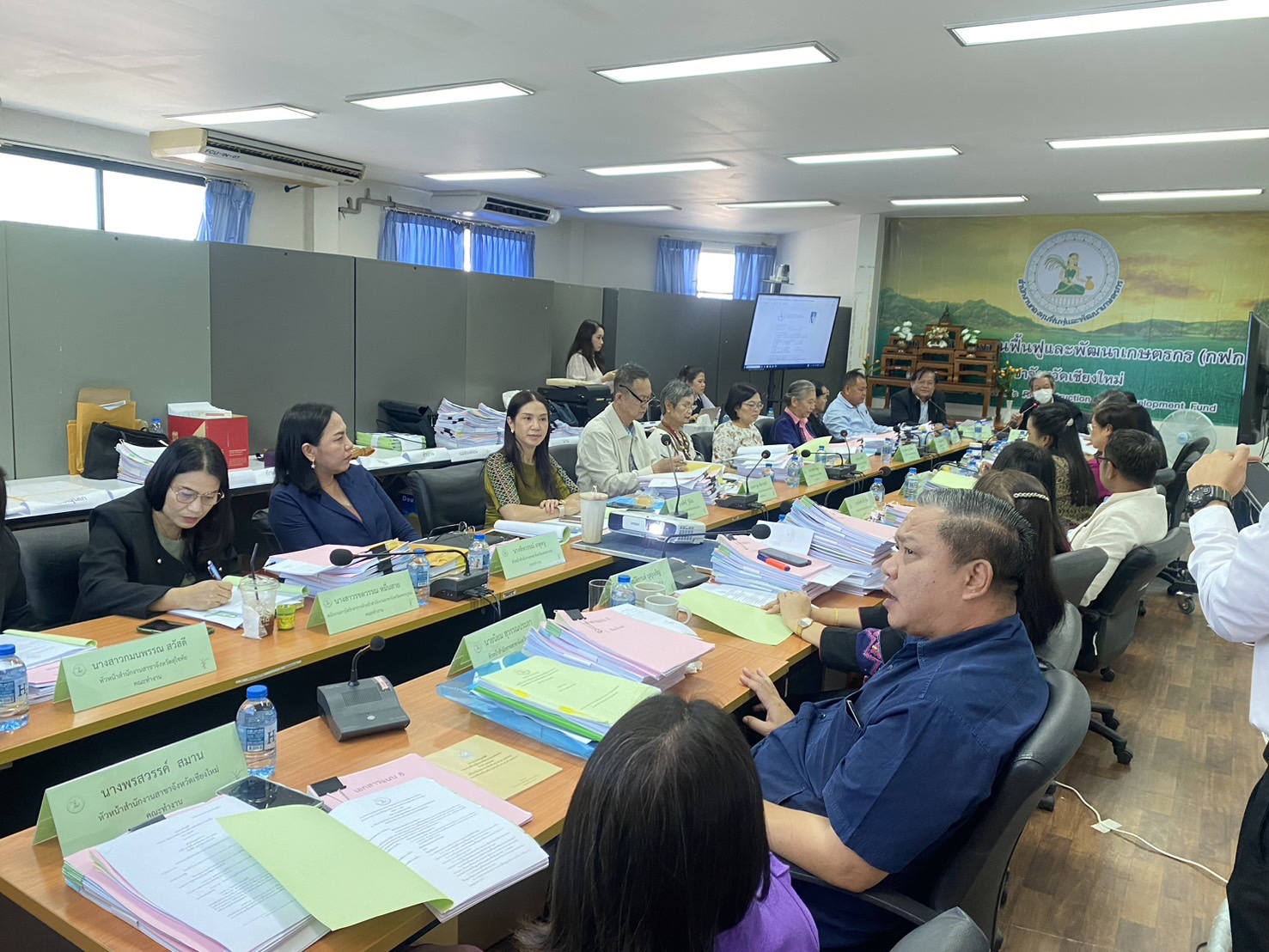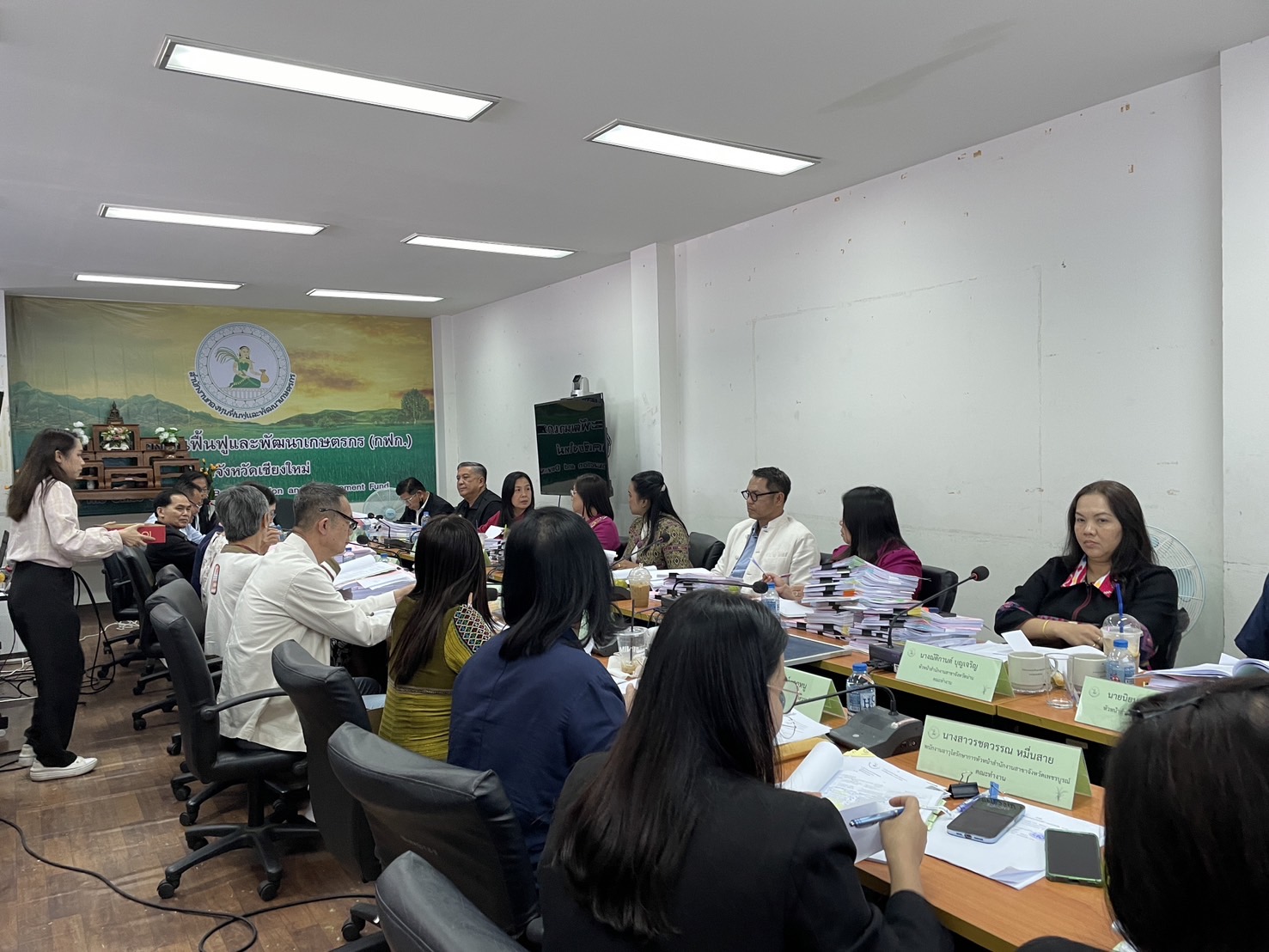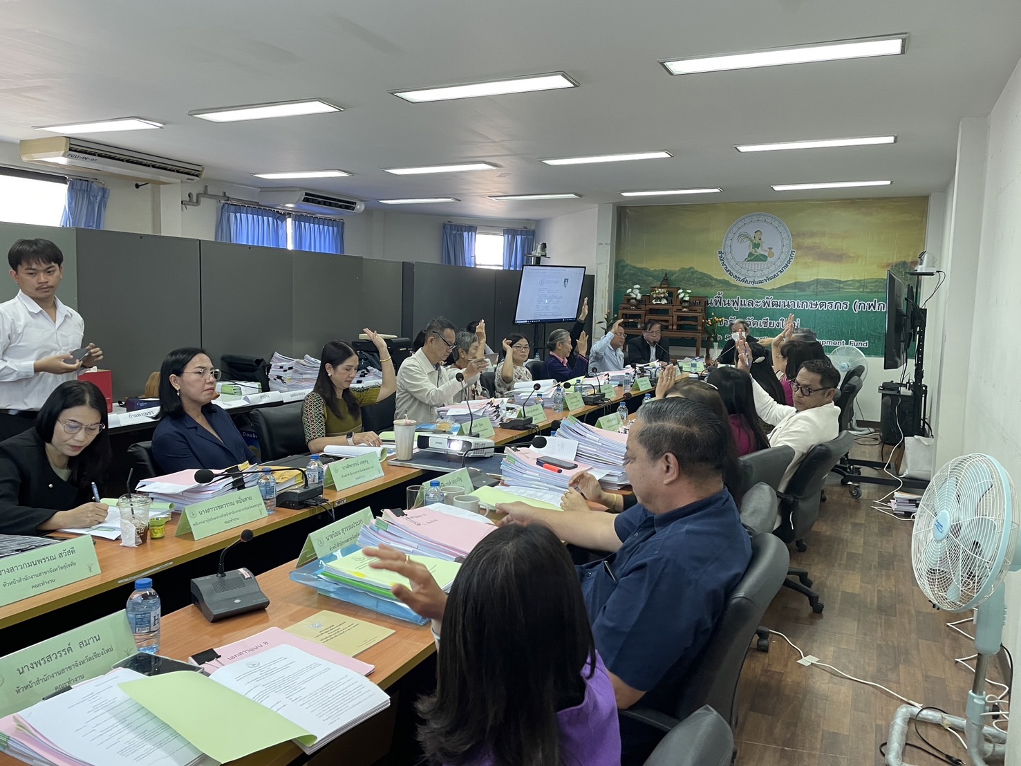 นางพรสวรรค์ สมาน หัวหน้าสำนักงานกองทุนฟื้นฟูและพัฒนาเกษตรกร สาขาจังหวัดเชียงใหม่ (กฟก.) เข้าร่วมประชุมสรรหาผู้แทนภาคราชการและผู้แทนภาคเอกชนเป็นอนุกรรมการกองทุนฟื้นฟูและพัฒนาเกษตรกรจังหวัด ภูมิภาคที่ 1 (ภาคเหนือ) พร้อมด้วยหัวหน้าสำนักงานสาขาจังหวัด ภาคเหนือ 17 จังหวัด โดยมีนายยุทธศักดิ์ ยารังษี ผู้แทนเกษตรกร ภูมิภาคที่ 1 เป็นประธาน และมีนายรัตนกุล โพธิ ผู้อำนวยการสำนักกิจการสาขาภูมิภาคที่ 1 ทำหน้าที่เลขานุการฯ ณ ห้องประชุม สำนักงานกองทุนฟื้นฟูและพัฒนาเกษตรกร สาขาจังหวัดเชียงใหม่