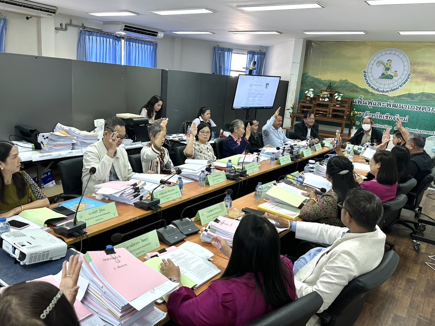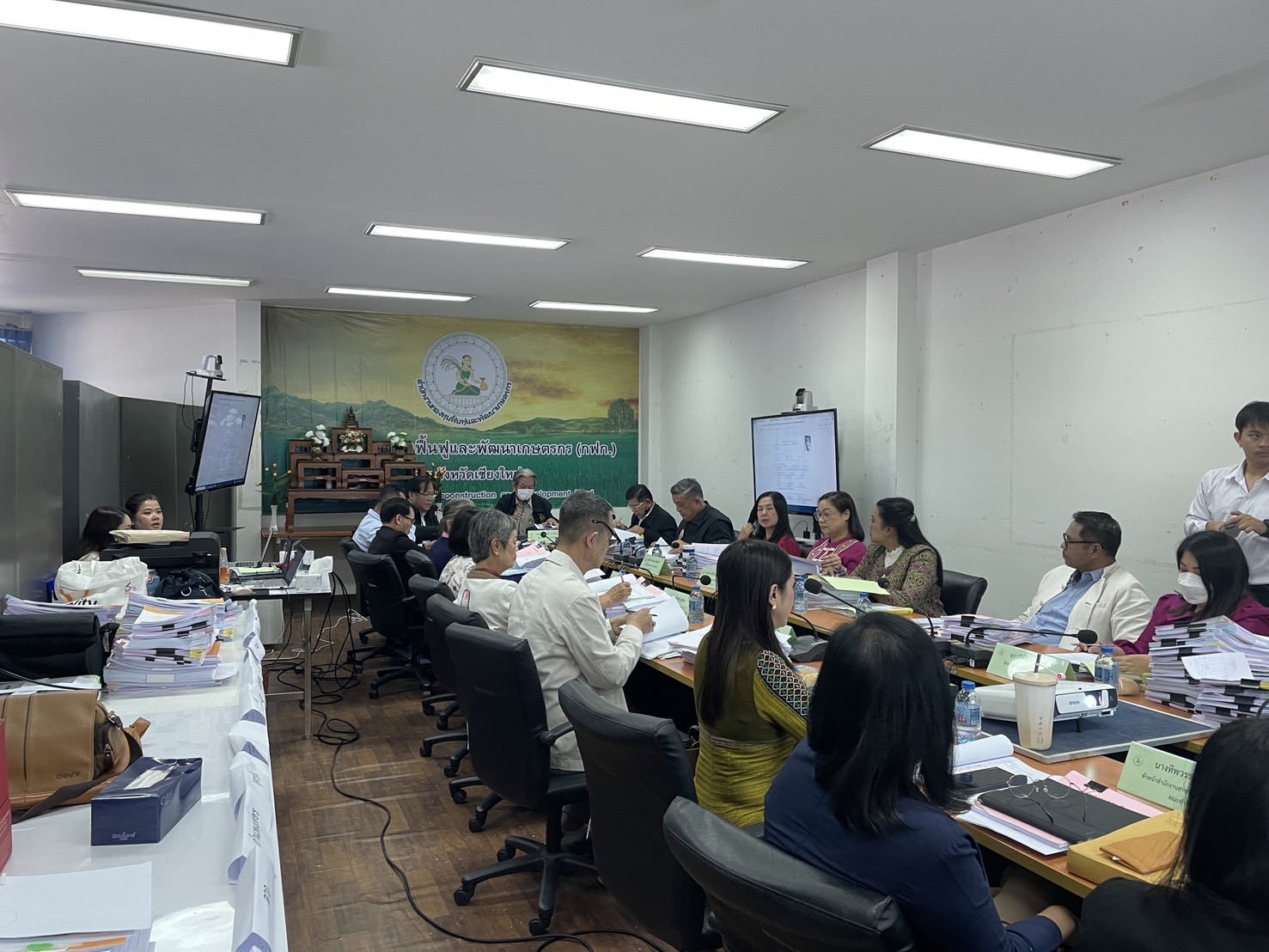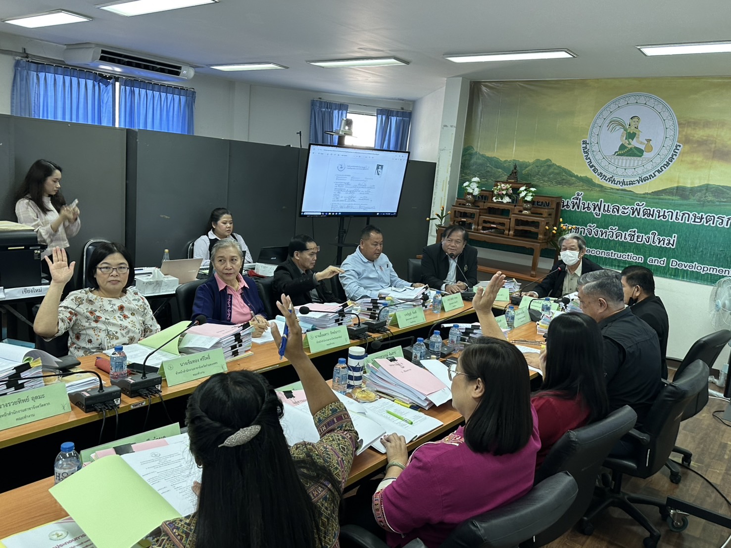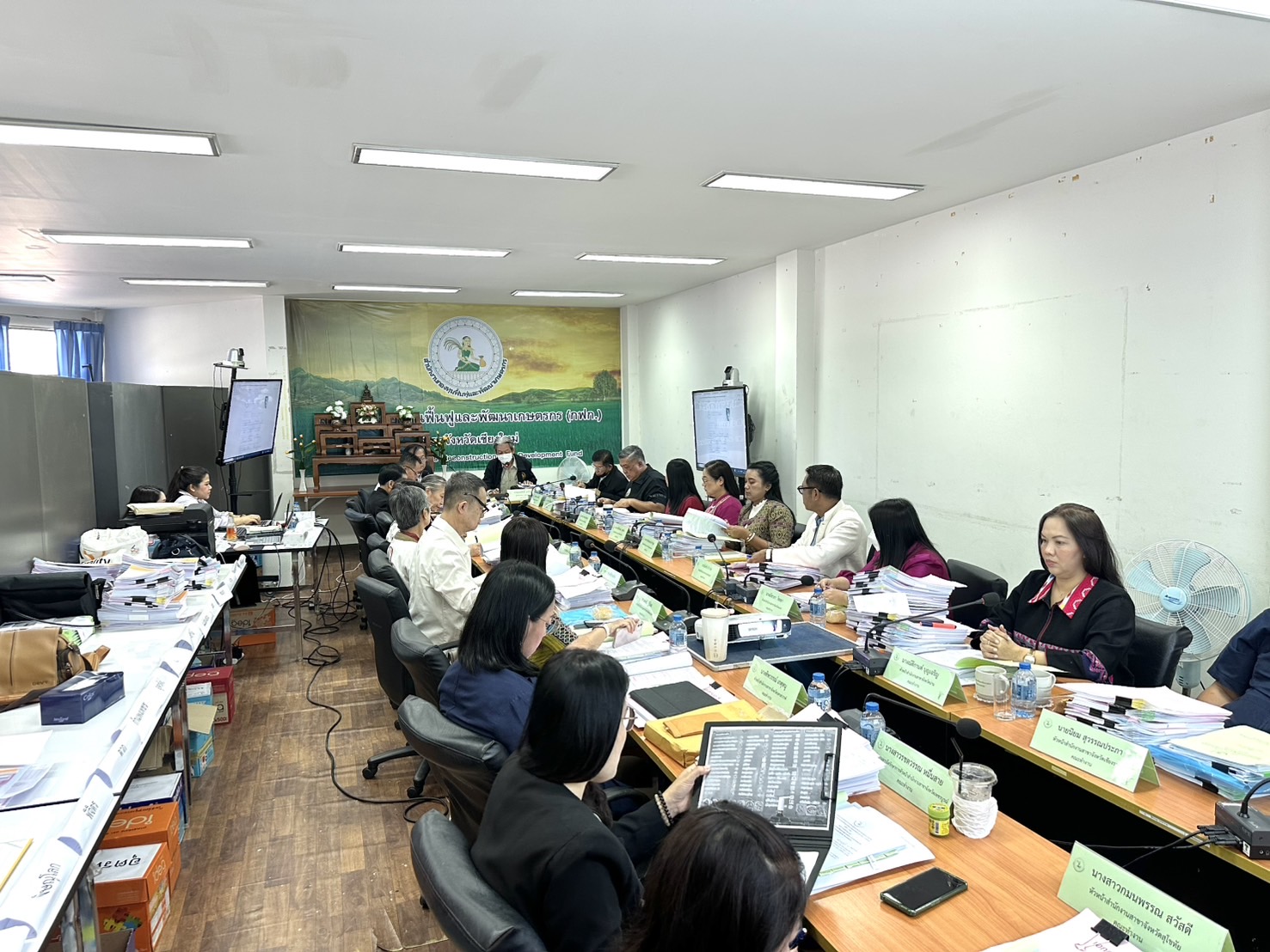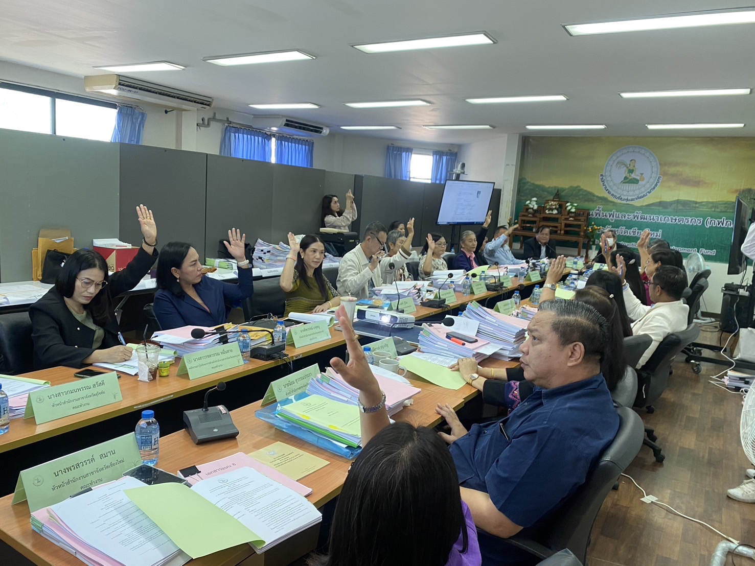 นางพรสวรรค์ สมาน หัวหน้าสำนักงานกองทุนฟื้นฟูและพัฒนาเกษตรกร สาขาจังหวัดเชียงใหม่ (กฟก.) เข้าร่วมประชุมสรรหาผู้แทนภาคราชการและผู้แทนภาคเอกชนเป็นอนุกรรมการกองทุนฟื้นฟูและพัฒนาเกษตรกรจังหวัด ภูมิภาคที่ 1 (ภาคเหนือ) พร้อมด้วยหัวหน้าสำนักงานสาขาจังหวัด ภาคเหนือ 17 จังหวัด โดยมีนายยุทธศักดิ์ ยารังษี ผู้แทนเกษตรกร ภูมิภาคที่ 1 เป็นประธาน และมีนายรัตนกุล โพธิ ผู้อำนวยการสำนักกิจการสาขาภูมิภาคที่ 1 ทำหน้าที่เลขานุการฯ ณ ห้องประชุม สำนักงานกองทุนฟื้นฟูและพัฒนาเกษตรกร สาขาจังหวัดเชียงใหม่