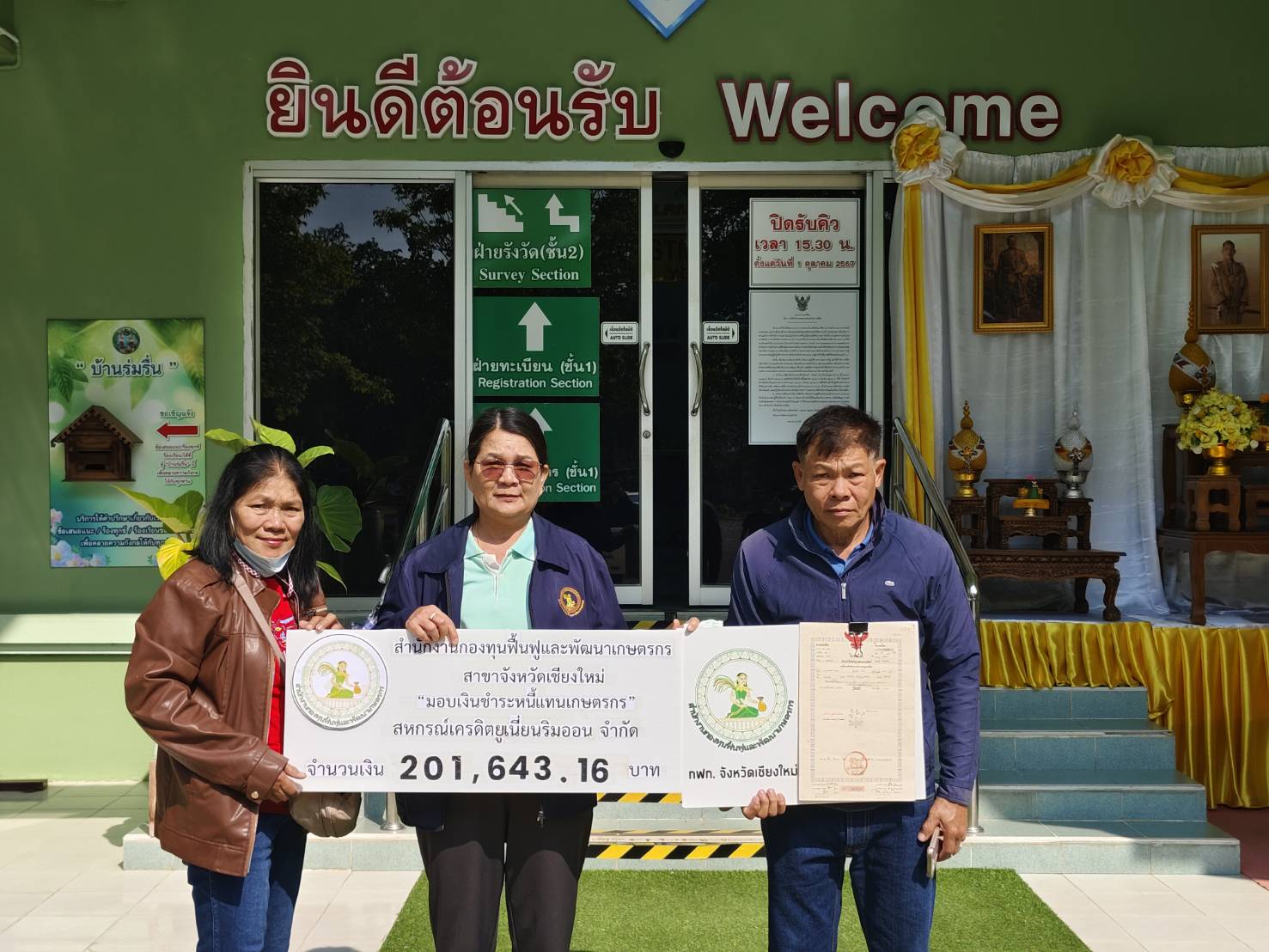 The post วันที่ 29 มกราคม 2568 มอบเงินชำระหนี้แทนให้กับเกษตรกรสมาชิก จำนวน 1 ราย สถาบันเจ้าหนี้ (สหกรณ์เครดิตยูเนี่ยนริมออน จำกัด) appeared first on สำนักงานกองทุนฟื้นฟูและพัฒนาเกษตรกร สาขาจังหวัดเชียงใหม่.