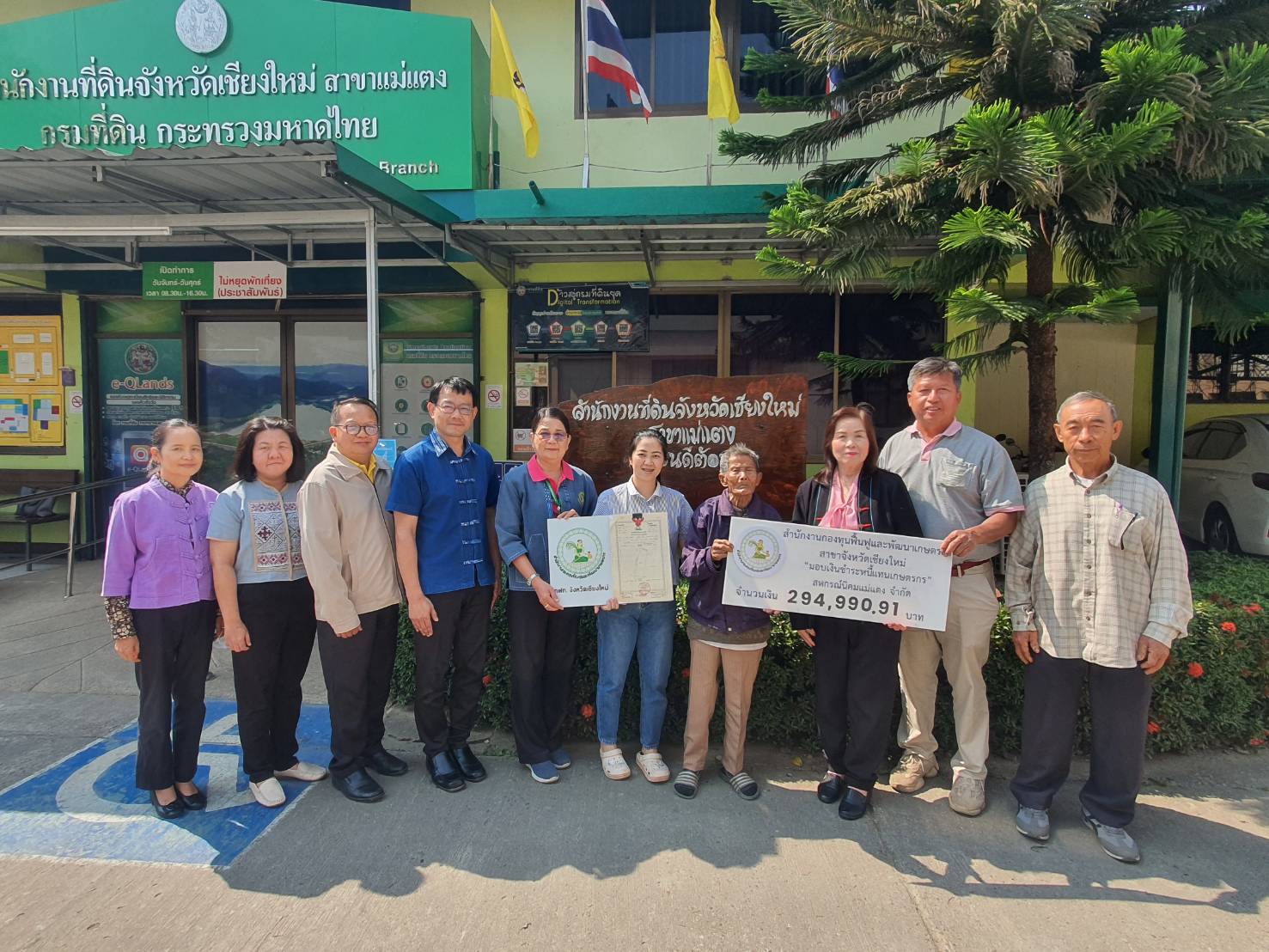 วันที่ 4 กุมภาพันธ์ 256 นางพรสวรรค์ สมาน หัวหน้าสำนักงานกองทุนฟื้นฟูและพัฒนาเกษตรกร สาขาจังหวัดเชียงใหม่ มอบเงินชำระหนี้แทน กรณีหลักทรัพย์ค้ำประกัน ให้กับเกษตรกรสมาชิก จำนวน 1 ราย โดยมีนางสุพัตรา ผ่อนจตุรัส ประธานอนุกรรมการ และนายเอกบดี จันภักษานนท์ ผู้อำนวยการกลุ่มส่งเสริมและพัฒนาการบริหารการจัดการสหกรณ์และอนุกรรมการจังหวัดเชียงใหม่ ร่วมมอบเงินจำนวน 294,990.91 แก่สถาบันเจ้าหนี้ (สหกรณ์)