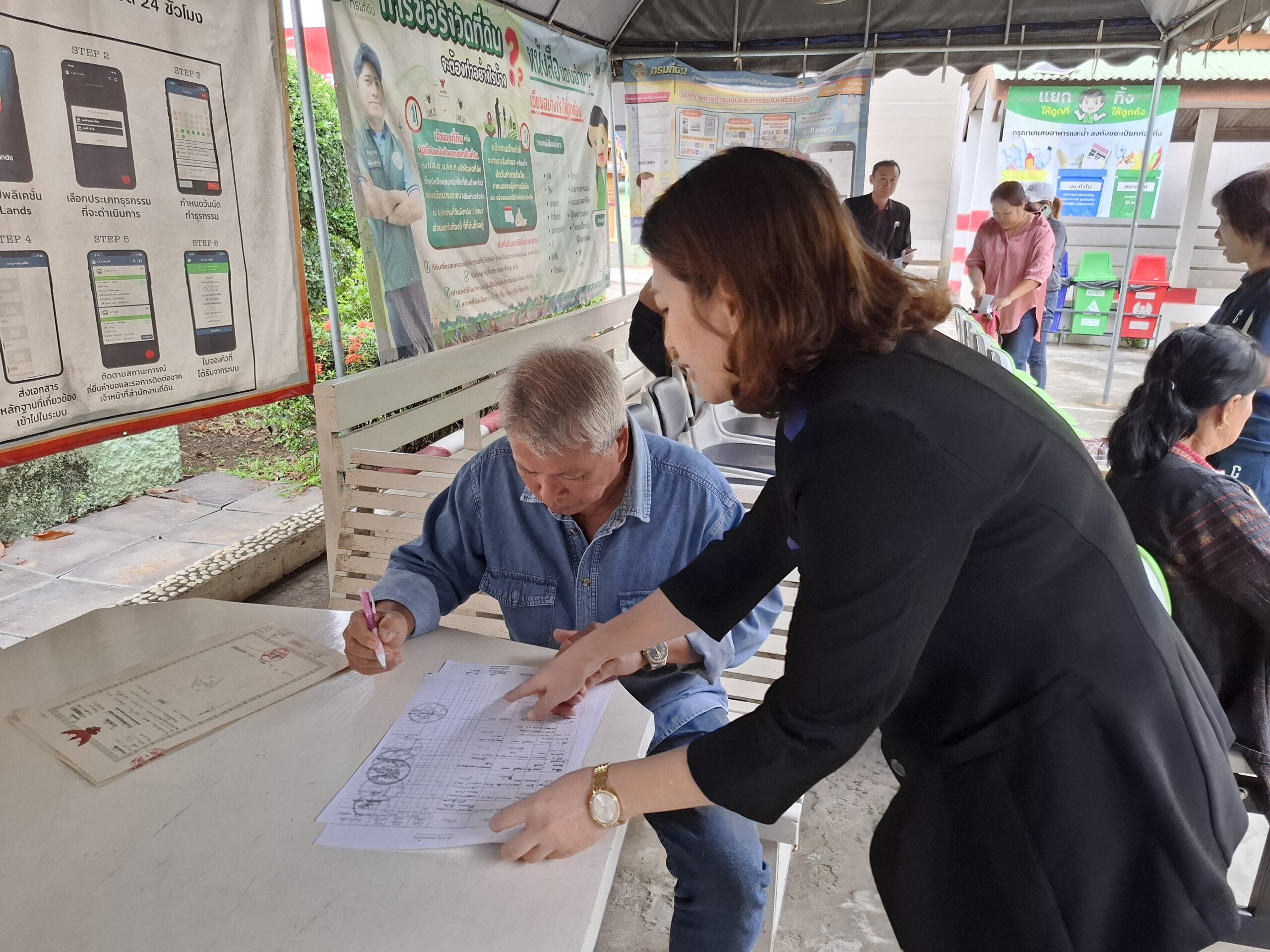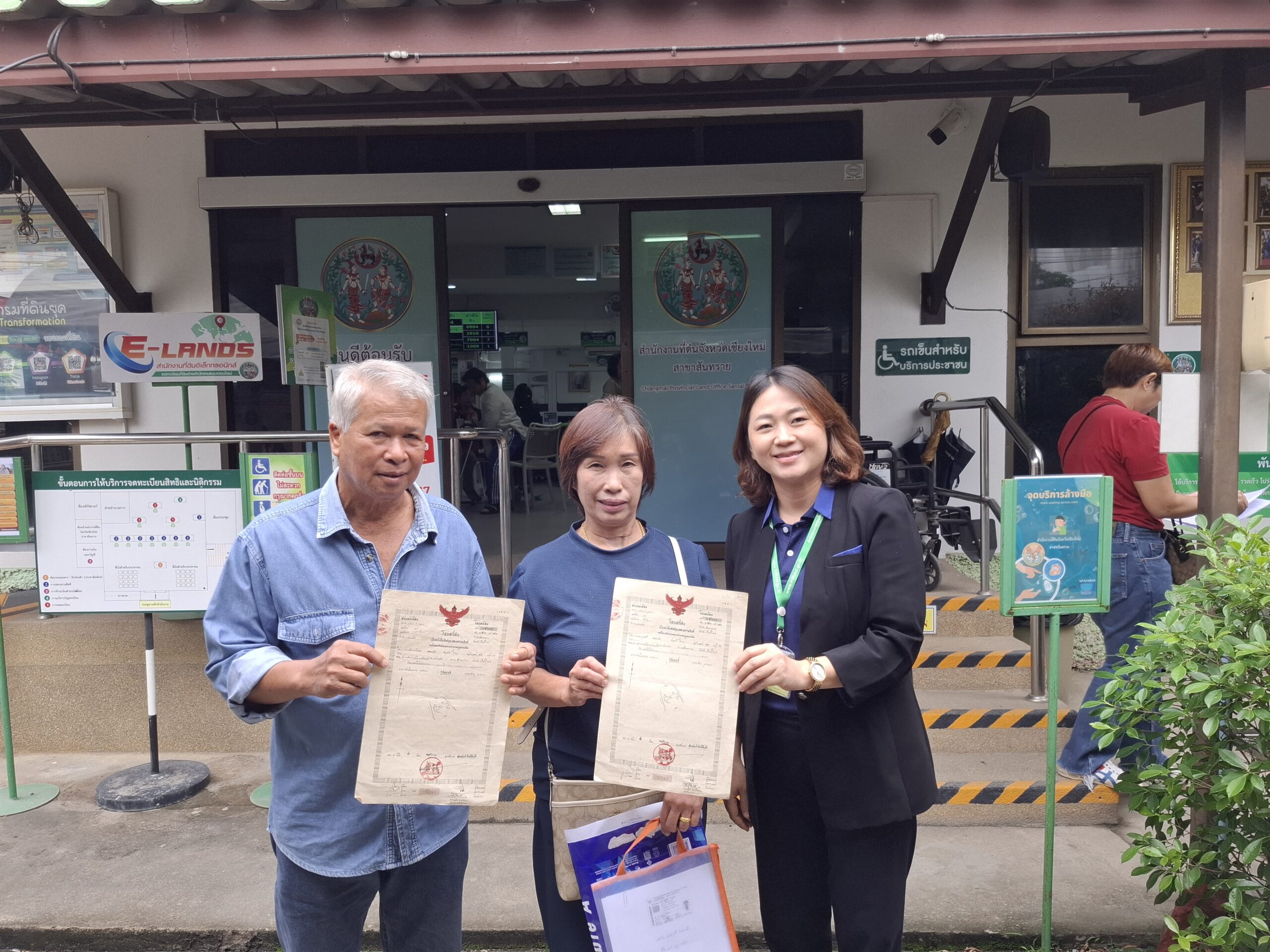 วันที่ 6 พฤศจิกายน 2567 นางพรสวรรค์ สมาน หัวหน้าสำนักงานกองทุนฟื้นฟูและพัฒนาเกษตรกร สาขาจังหวัดเชียงใหม่ (กฟก.) ได้มอบหมาย นางสาวชลาลัย ฟ้าภูเจริญ พนักงานอาวุโส และนางสาวเกสรา ถวิลวิศาล ลูกจ้างกลุ่มงานทั่วไป ดำเนินการโอนกรรมสิทธิ์ที่ดิน และมอบโฉนดที่ดินให้เกษตรกร อำเภอสันทราย จังหวัดเชียงใหม่ จำนวน 1 ราย โฉนดที่ดิน จำนวน 2 แปลง โดยเป็นการโอนที่ดินตามกฏหมาย กองทุนฟื้นฟูและพัฒนาเกษตรกร ณ สำนักงานที่ดินจังหวัดเชียงใหม่ สาขาสันทราย